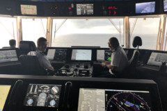 デッキ15前方にある「キャプテンズブリッジビューイングルーム」からは、「ゲンティン ドリーム」の操舵室をどなたでも見ることができます。またもっと間近で船長や航海士たちが操舵している様子を見たいという方には、操舵室を見学できる「キャプテンズブリッジツアー」(15分間 25シンガポールドル[SGD])がおすすめです。ただ、イメージしていた映画や漫画に出てくるような“面舵いっぱい!”的な回転する円形の大きな舵ではなく、最新機器をマウスで動かして操舵していましたよ。