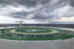 操舵室前の船頭にはヘリポートも。特別に案内してもらいました。映画『タイタニック』ごっご……はしていません(笑)。