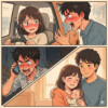 もうひとつの「The Chase(ザ チェイス)」には、ハイテンションなふたりが追いかけっこをしている様子が描かれています。