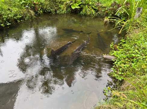 友達のおじいちゃんの家に行ったら池でベステルチョウザメ飼ってて驚いた笑