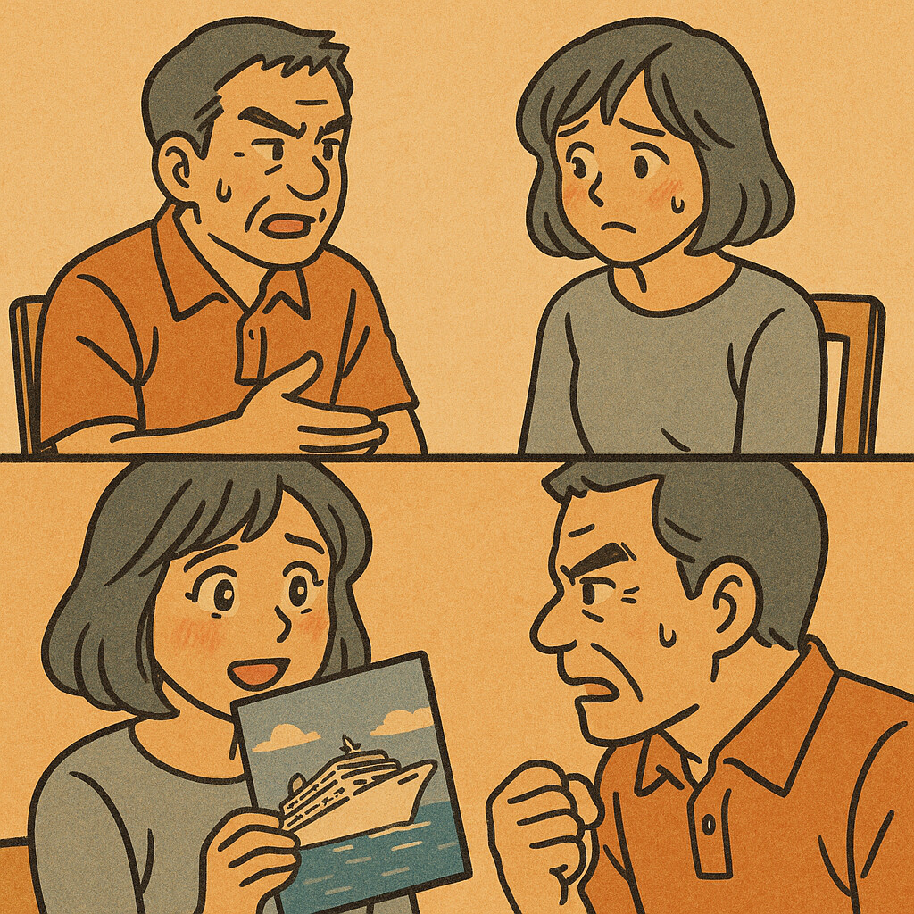 翌日、私はリビングの一番目立つ場所に、豪華客船のパンフレットを置きました。