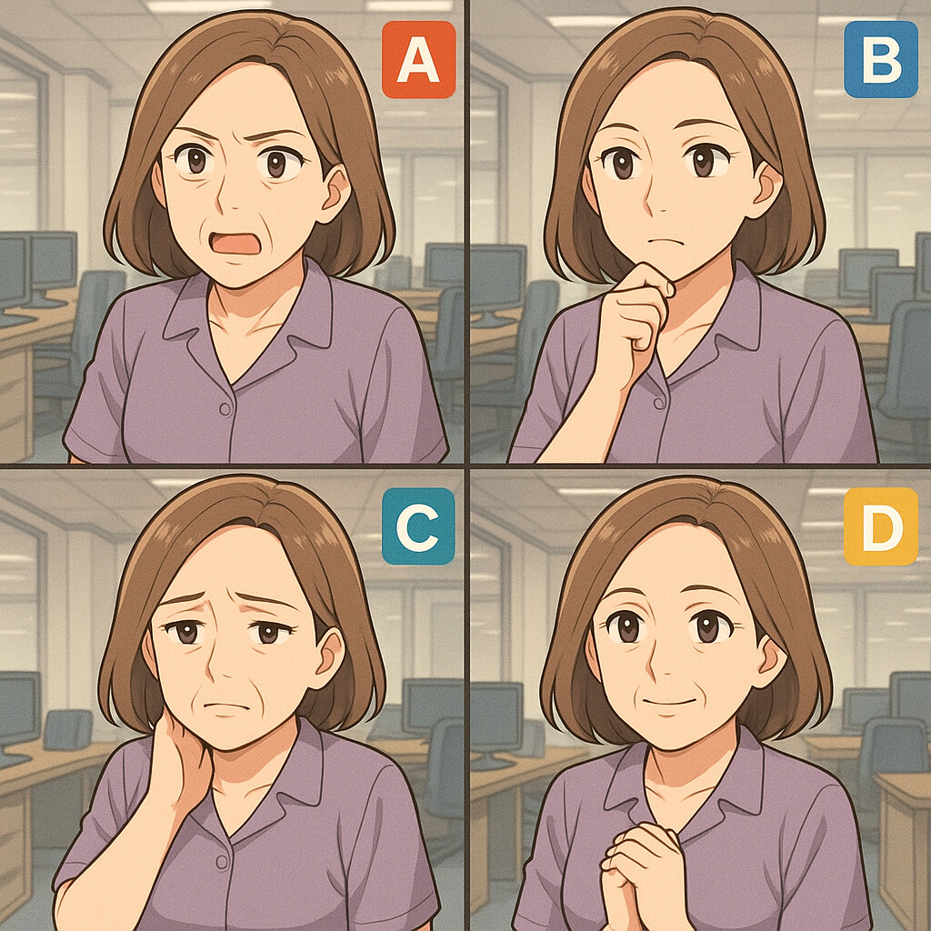 次の4つのうち、あなたに一番近いリアクションを選んでみてください。