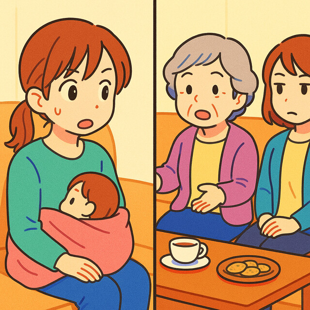 私はケープ越しに義母に視線を送りましたが、義母は私が授乳中だと分かっていながら、悪びれる様子もなくお茶を要求しているだけでした。