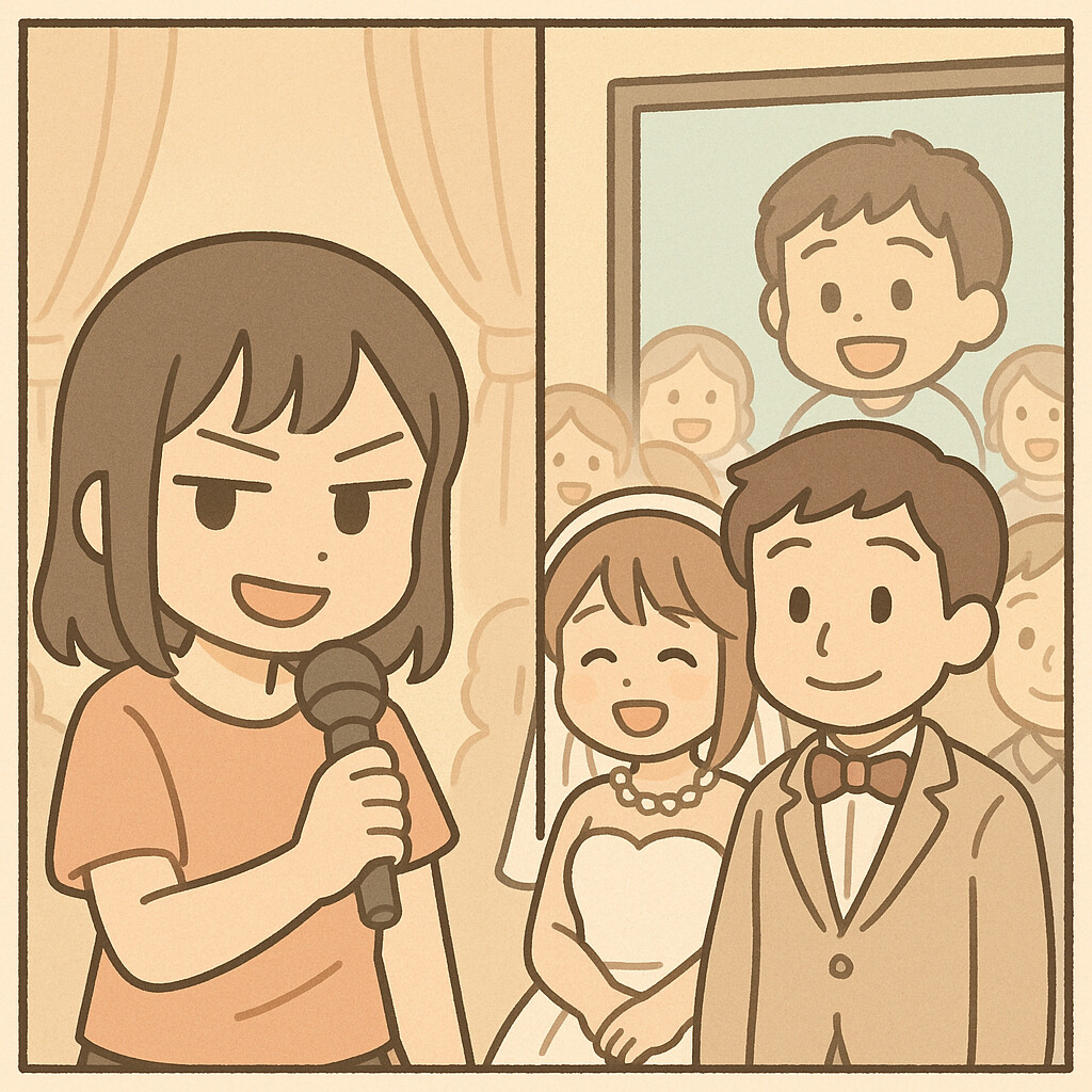 「続きましては、新郎の妹様より、心温まる余興でございます!」
