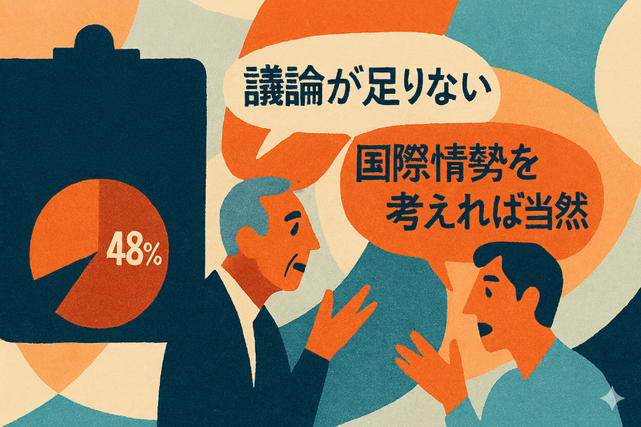 賛成が反対を上回ったという事実は、国際的な現実を前に、「平和主義」の維持と「現実的な防衛力」の必要性の間で、多くの人が悩み始めている証拠かもしれません。