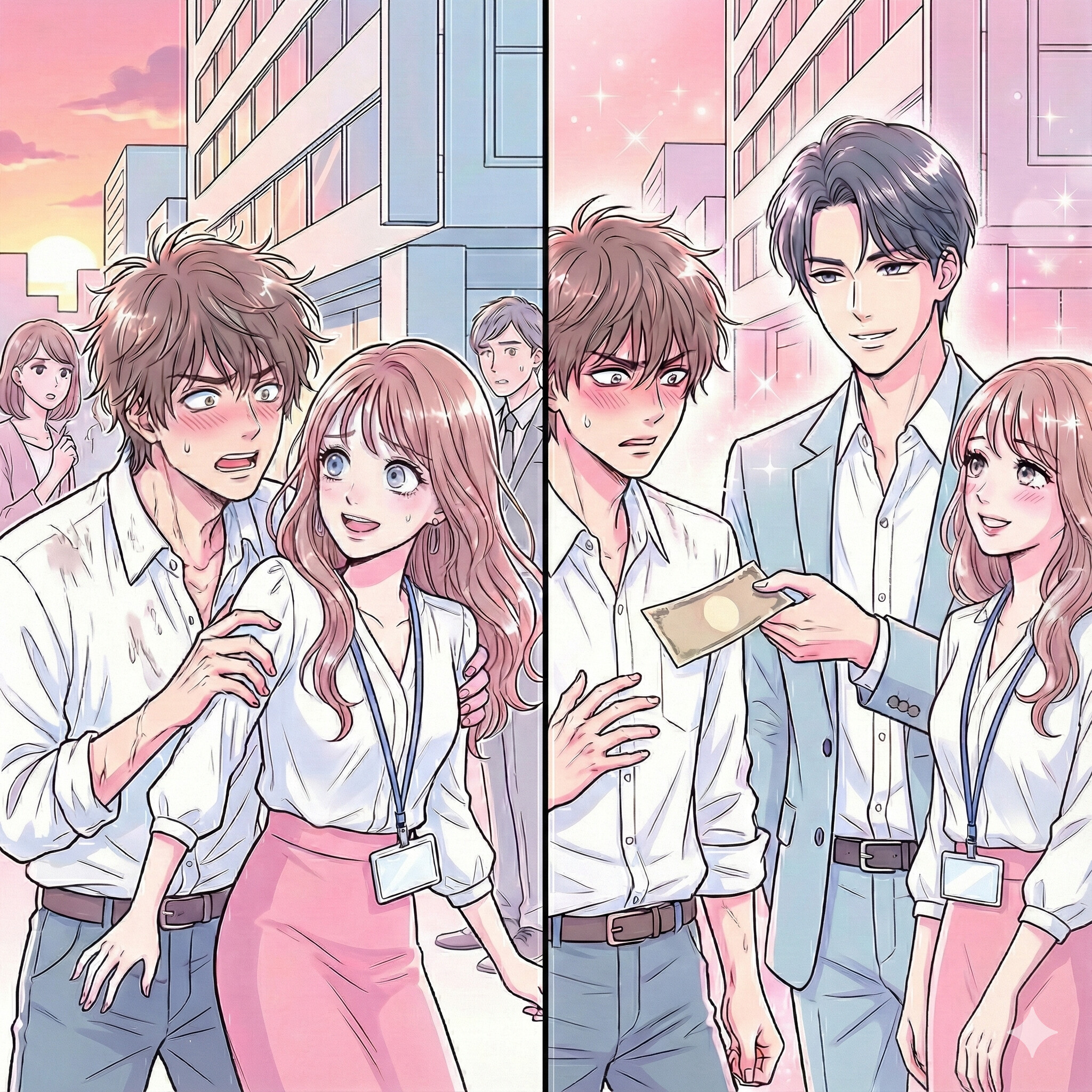 「こいつが新しい男か? 僕の方が君を理解している!」と騒ぎ立てる元彼に対し、今の彼は怒るどころか、どこか楽しそうな笑みを浮かべて元彼を観察し始めました。