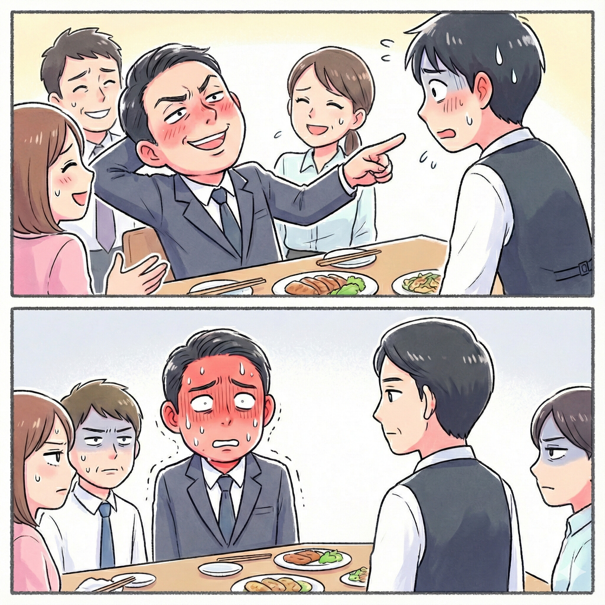 しばらくして、困惑した様子の店長が私たちのテーブルへやってきました。同僚は勝ち誇った顔で店長に声をかけます。