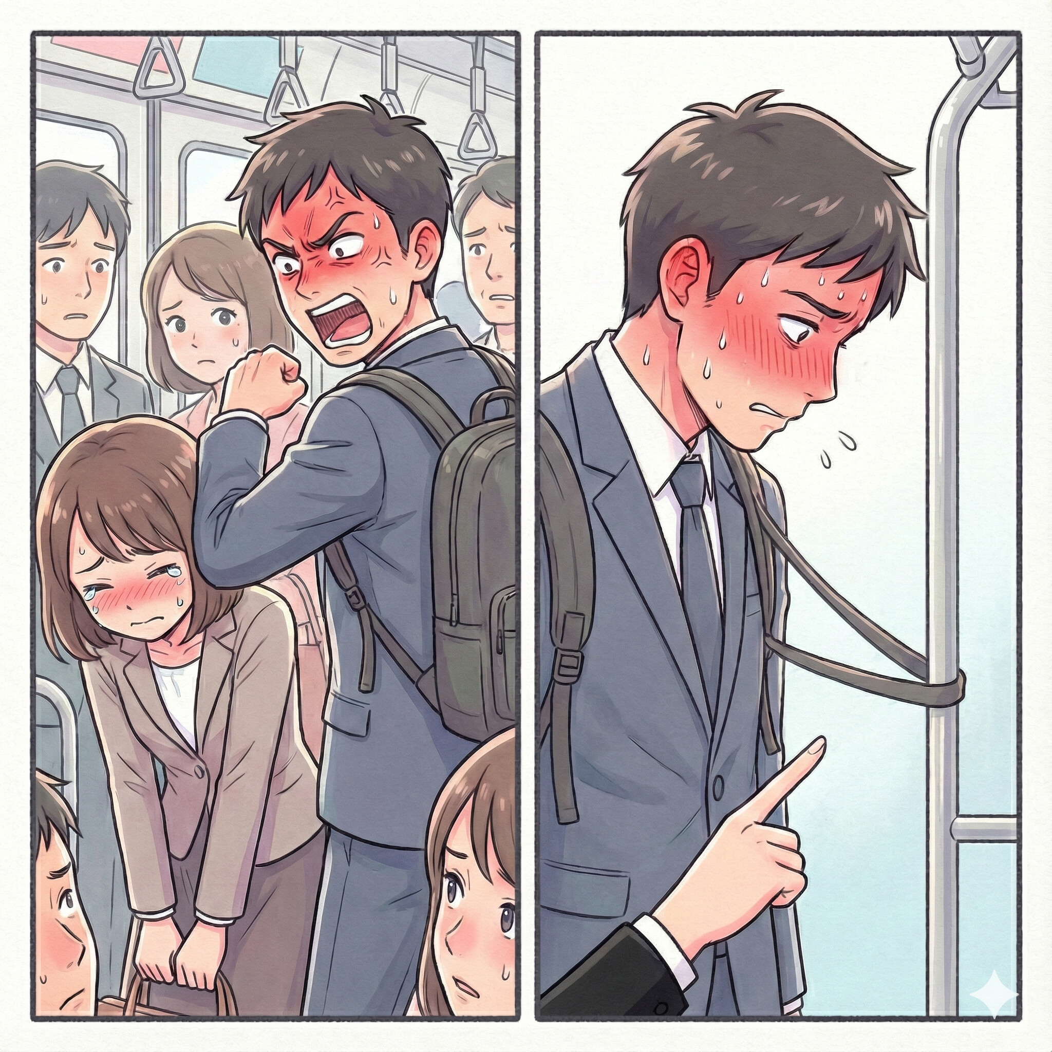 車内に怒鳴り声が響きました。私は彼を押し返してなどいません。むしろ周囲の圧力に耐えながら、彼に当たらないよう必死に姿勢を保っていただけでした。