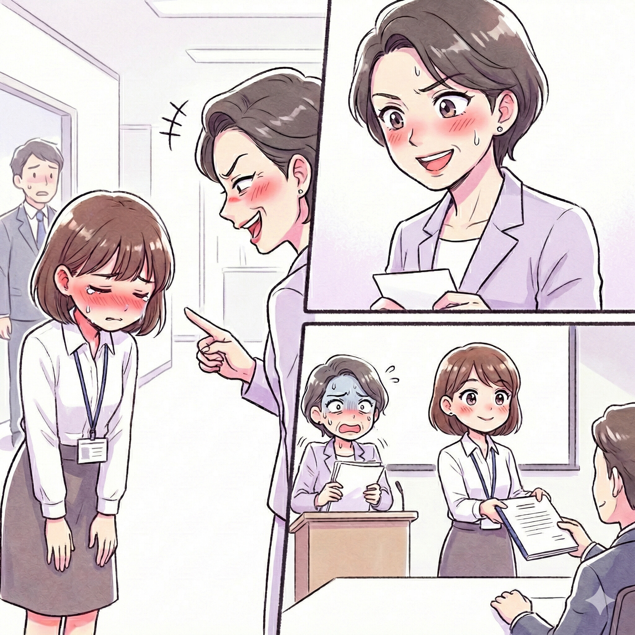 会議後、真っ青な顔で立ち尽くす彼女。私は、彼女に言われた言葉をそのまま、丁寧な敬語で返しました。