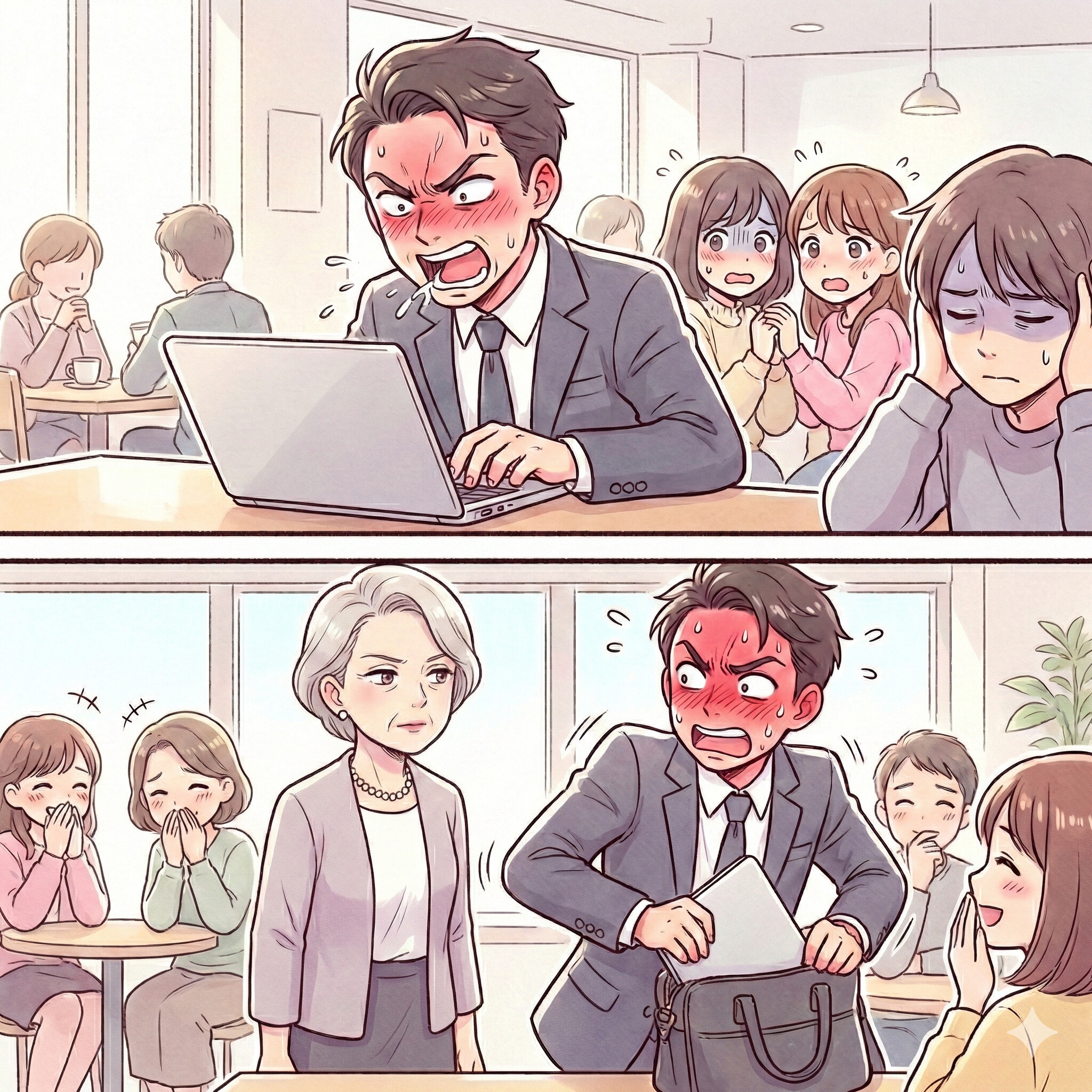 「仕事中なんだから静かにしろ」カフェでWeb会議をする男。だが、他の客の正論をうけ赤面【短編小説】