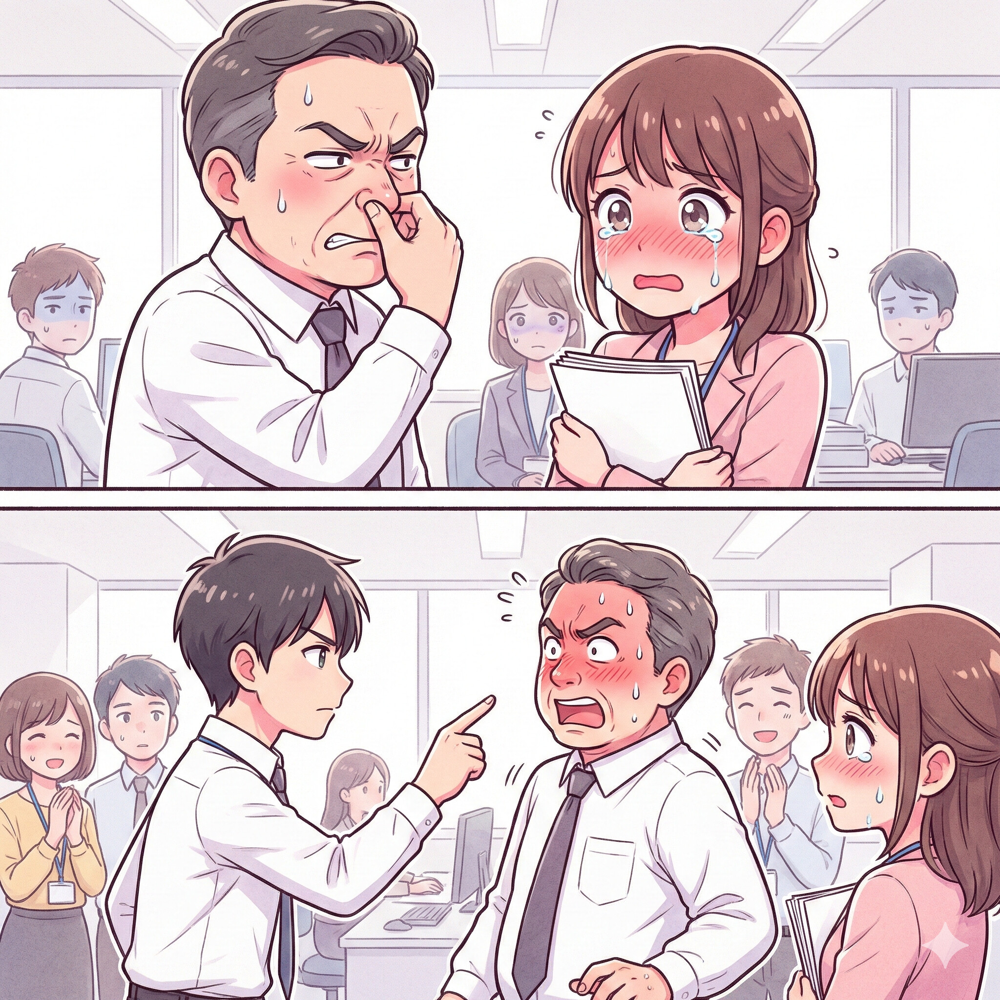 淡々と正論を突きつけられた上司は、顔を真っ赤にして絶句しました。周囲からも「そうだ」と賛同の声が上がります。