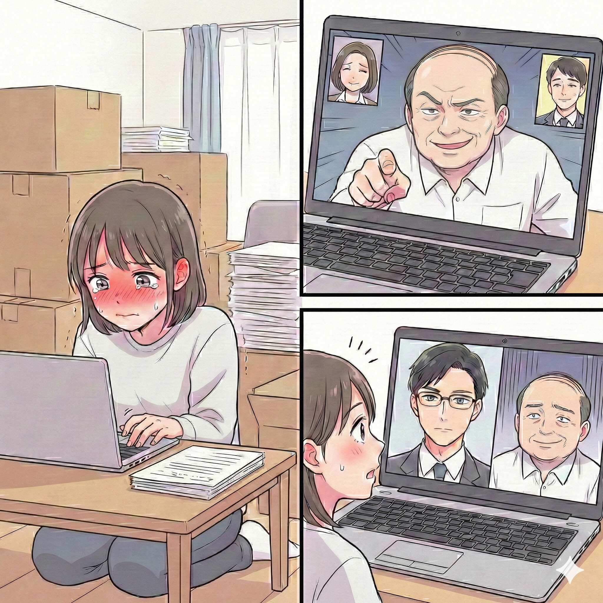 画面の向こうで、数人の同僚が困ったように苦笑いをするのが見えました。私は恥ずかしさと悔しさで俯くことしかできません。