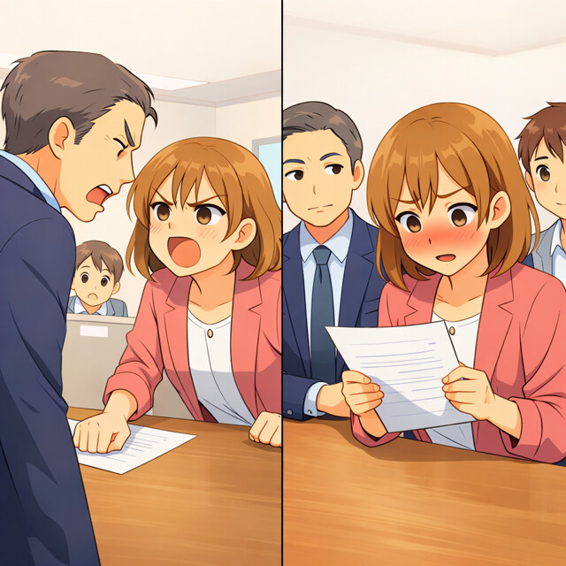 後輩は自分の給与明細をデスクに叩きつけ、上司を真っ向から睨みつけたのです。