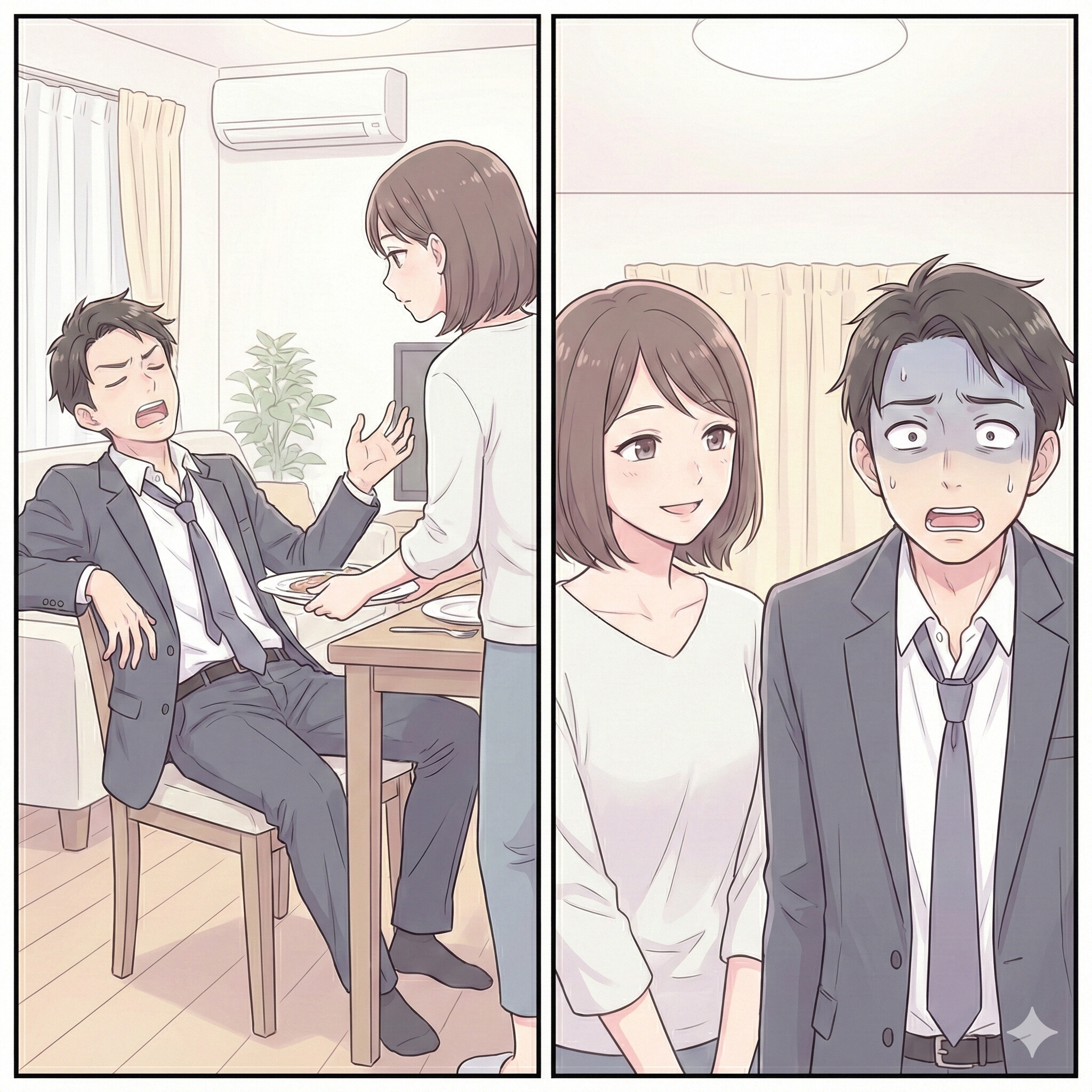 深夜、帰宅した夫は、椅子に座るなり大きなため息をつきました。ネクタイを乱暴に緩め、いかにも「自分だけが会社を支えている」と言わんばかりの態度です。