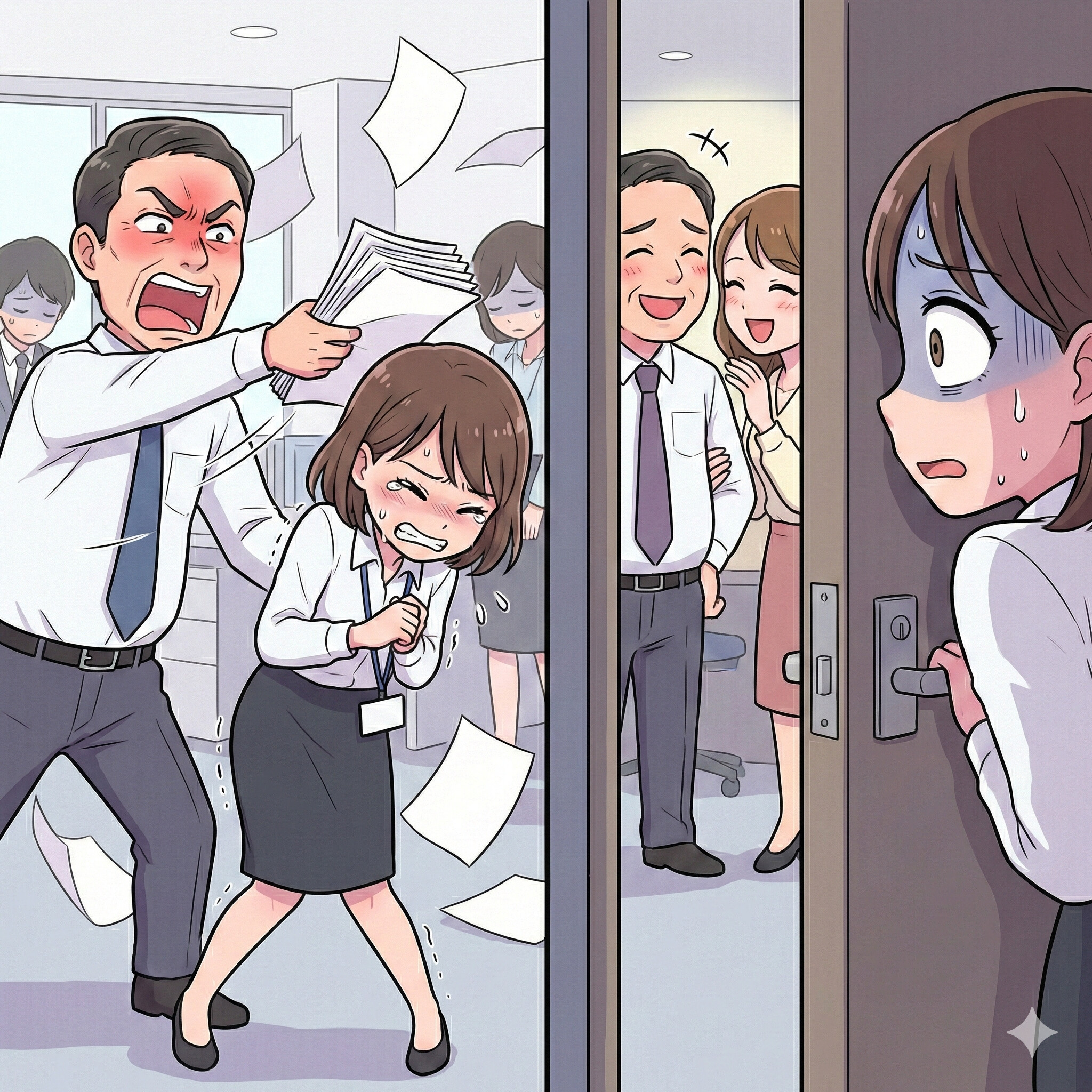 社内不倫、そして不当な人事評価とパワハラ。言い逃れのできない証拠を前に、上司は真っ青な顔で崩れ落ちました。