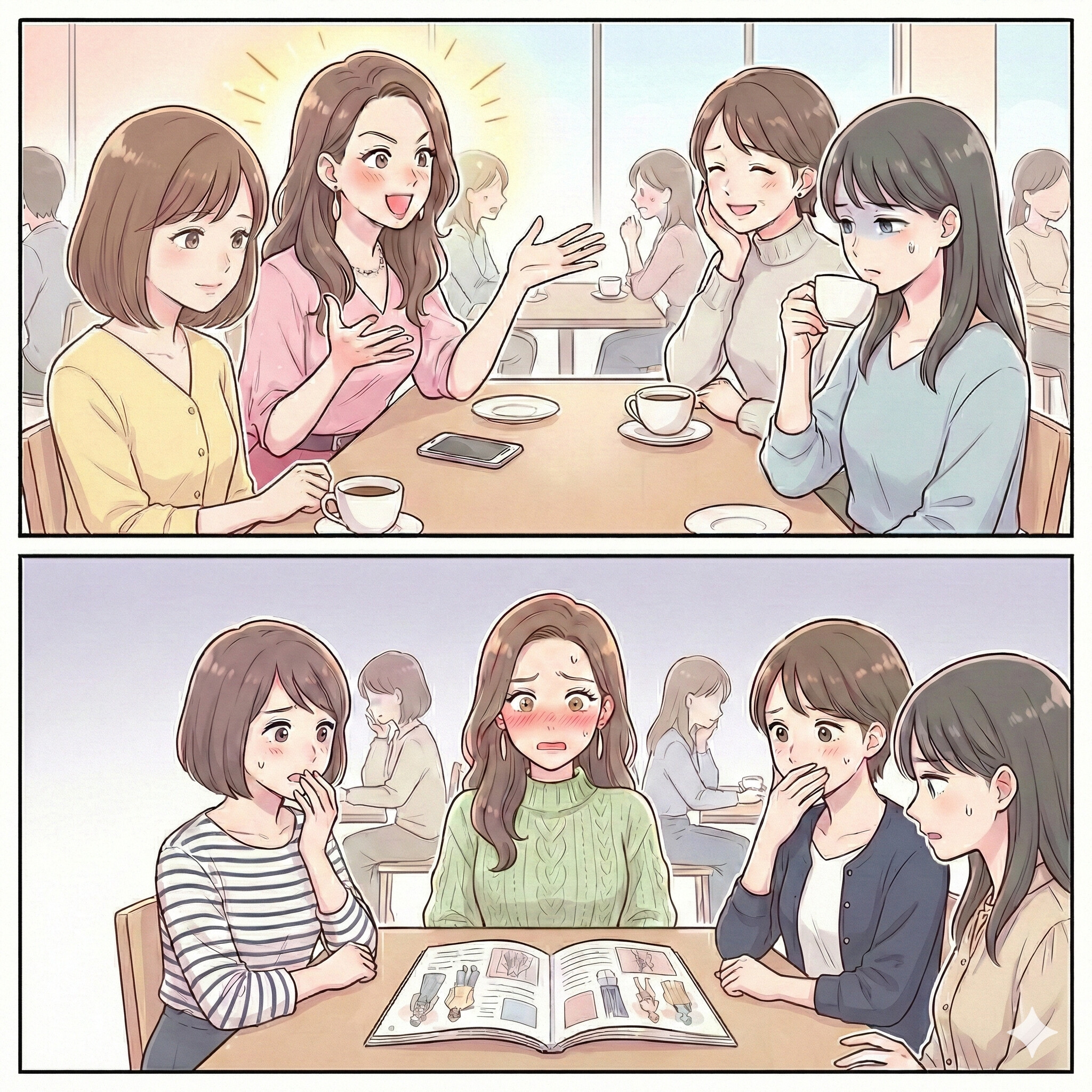 カフェに集まったママ友グループの中で、彼女の甲高い声が響き渡ります。