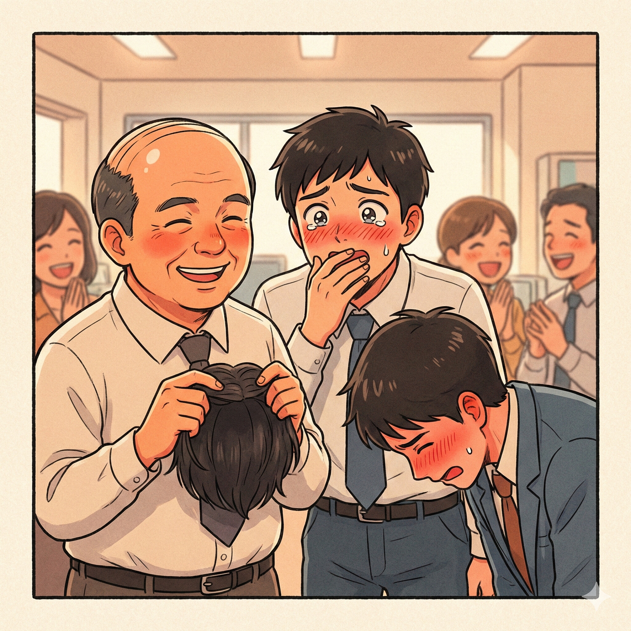 しかし、課長は真剣な表情のまま、つかつかと私たちのテーブルに歩み寄ってきます。そして、あろうことかご自身の髪の毛に手をかけたのです。