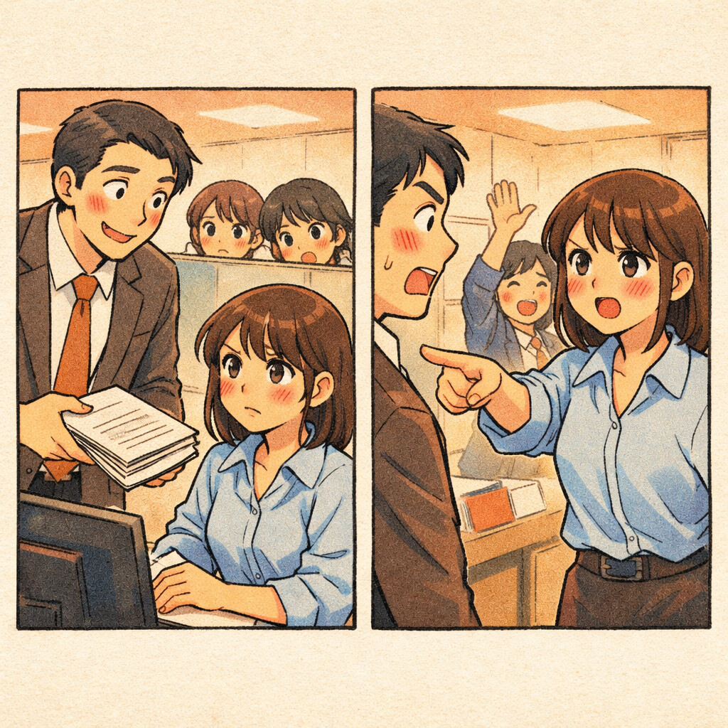 「君なら安心だから」と毎回雑務を押し付けてくる上司。だが、私の正論をうけ空気が一変