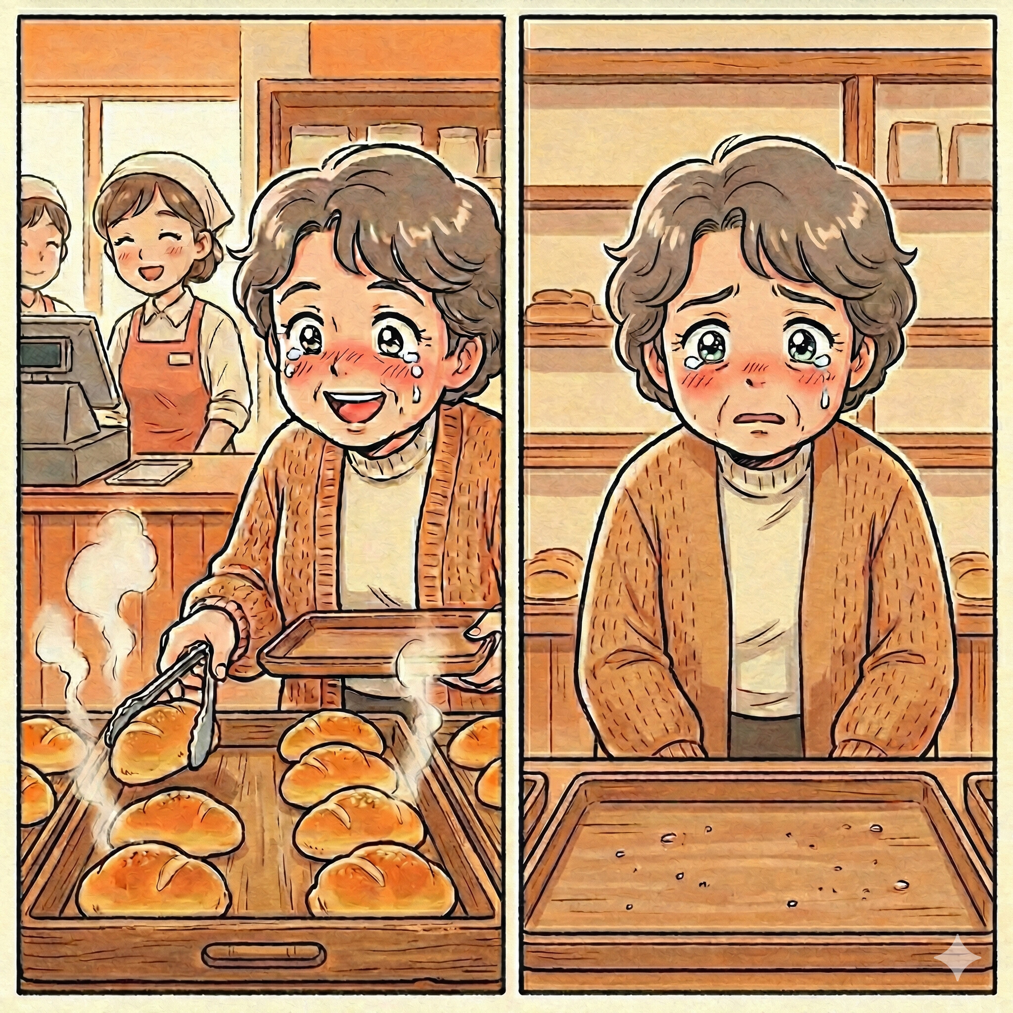 残されたのは、パン粉だけが散らばる空っぽのトレイ。
