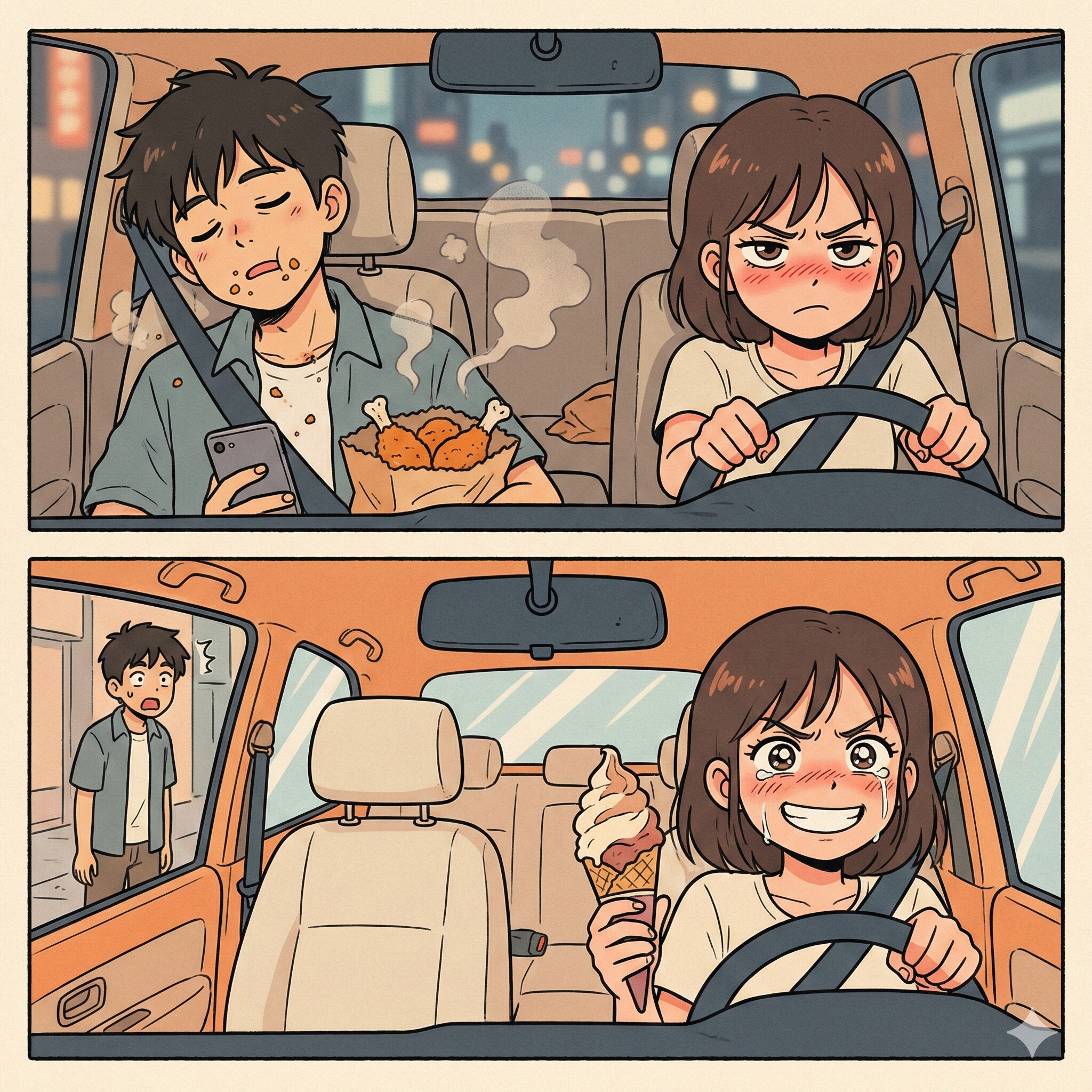 私の車、食堂じゃないんですけど。