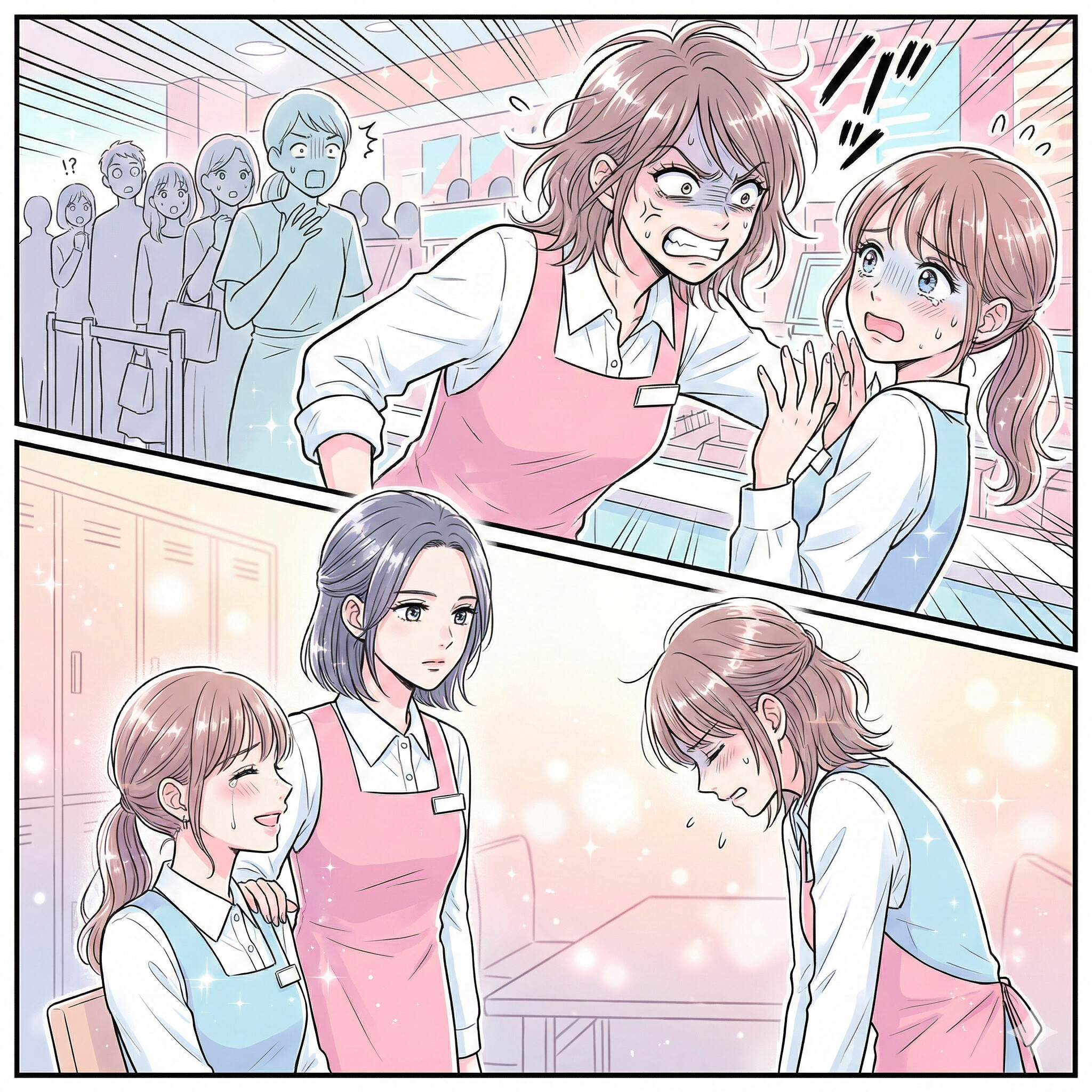 あまりの剣幕と、お客さんの驚いた視線が刺さる恥ずかしさで、私は頭が真っ白になってしまいました。