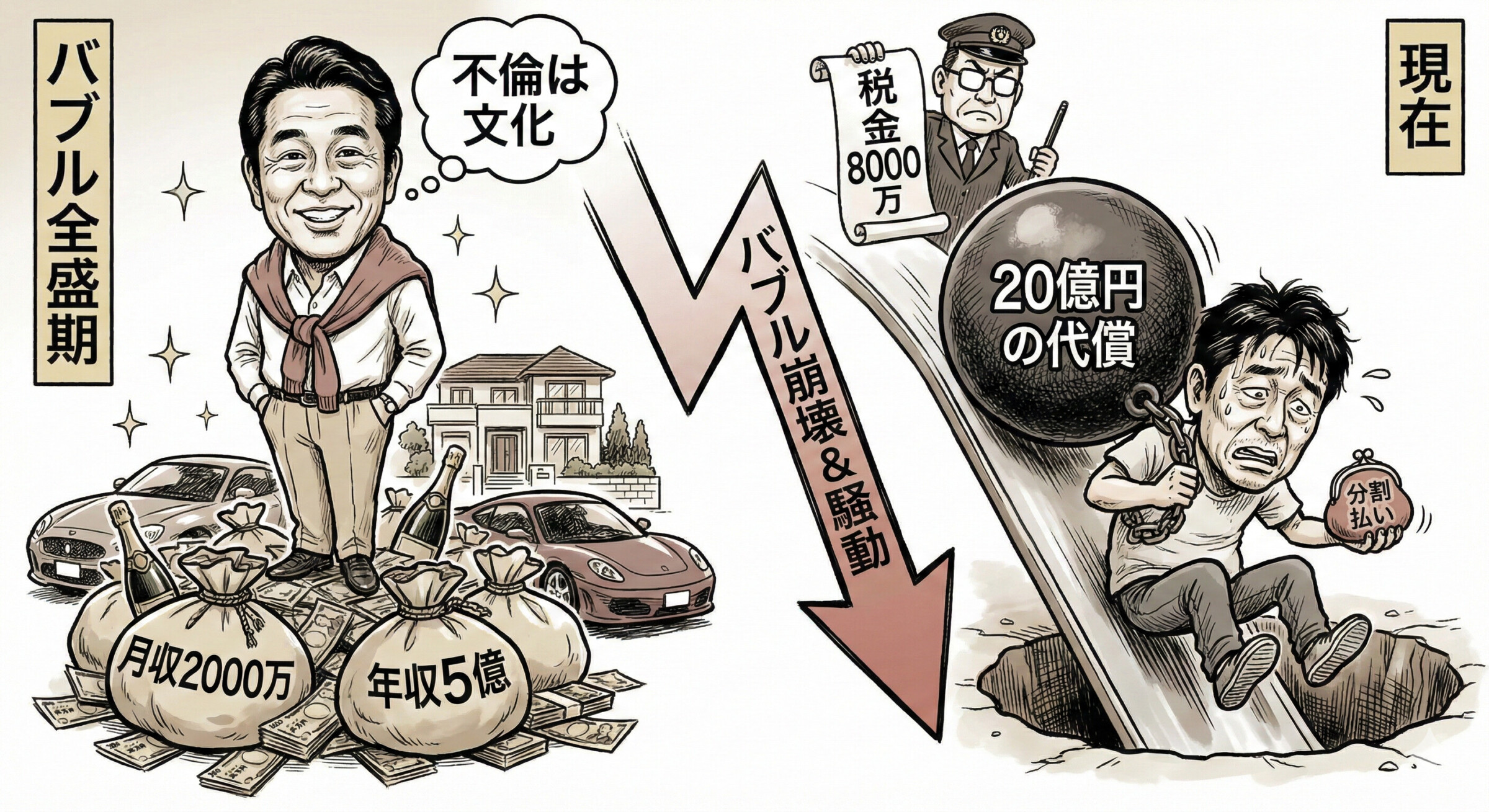 『全盛期の稼ぎが桁違いすぎて想像もつかないけれど、今の苦労話を聞くと因果応報を感じざるを得ない』