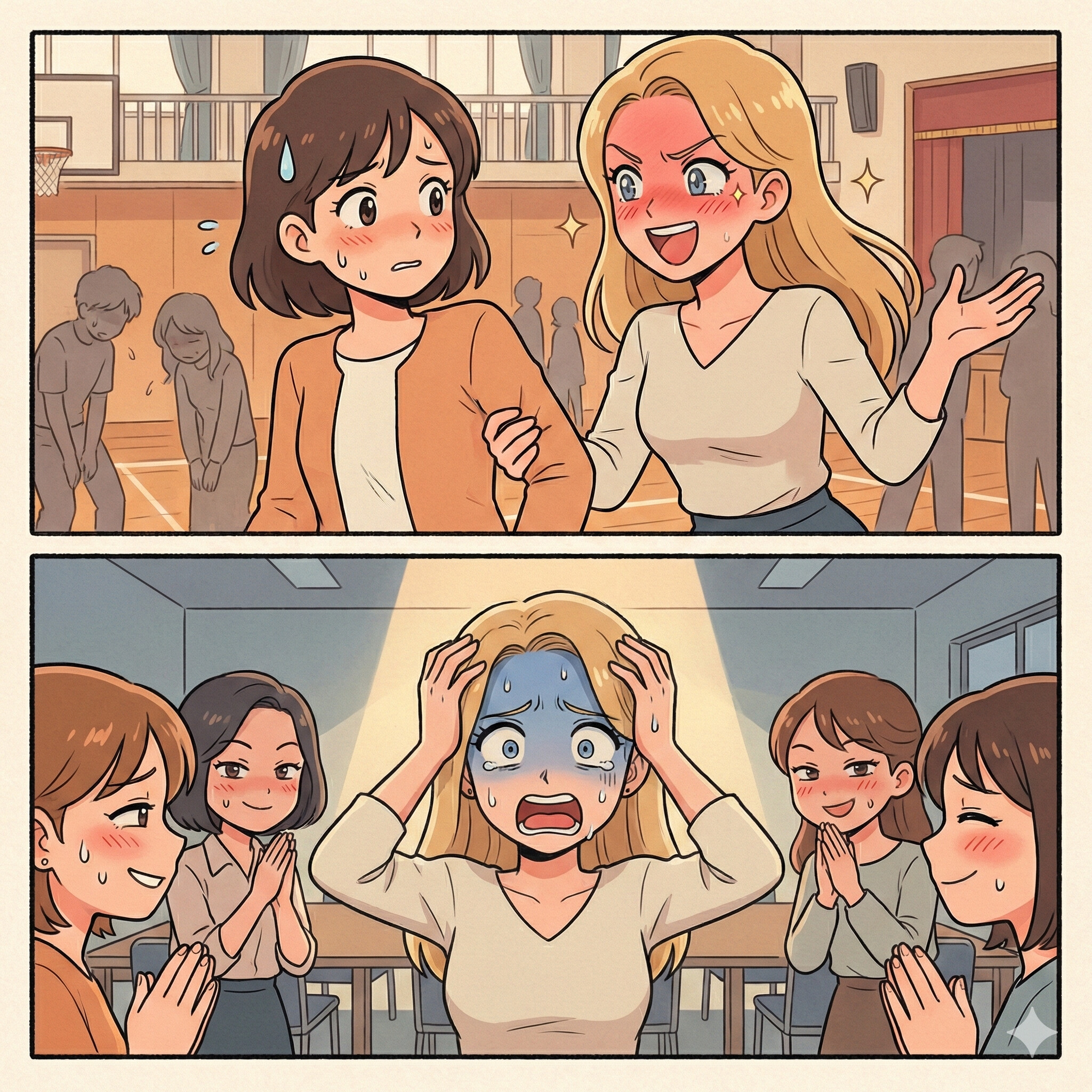 彼女は震える声で「で、でも私、忙しくて……」と言い訳しようとしましたが、時すでに遅し。