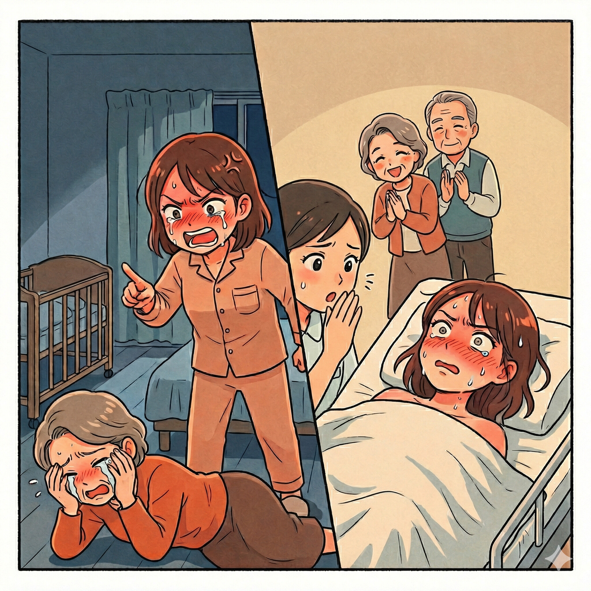 「生まれた!?」と出産した瞬間に入ってくる義父母。その後も連日続く非常識な行動に、思わず「おめーの子じゃねーだろ!!!」とキレた瞬間