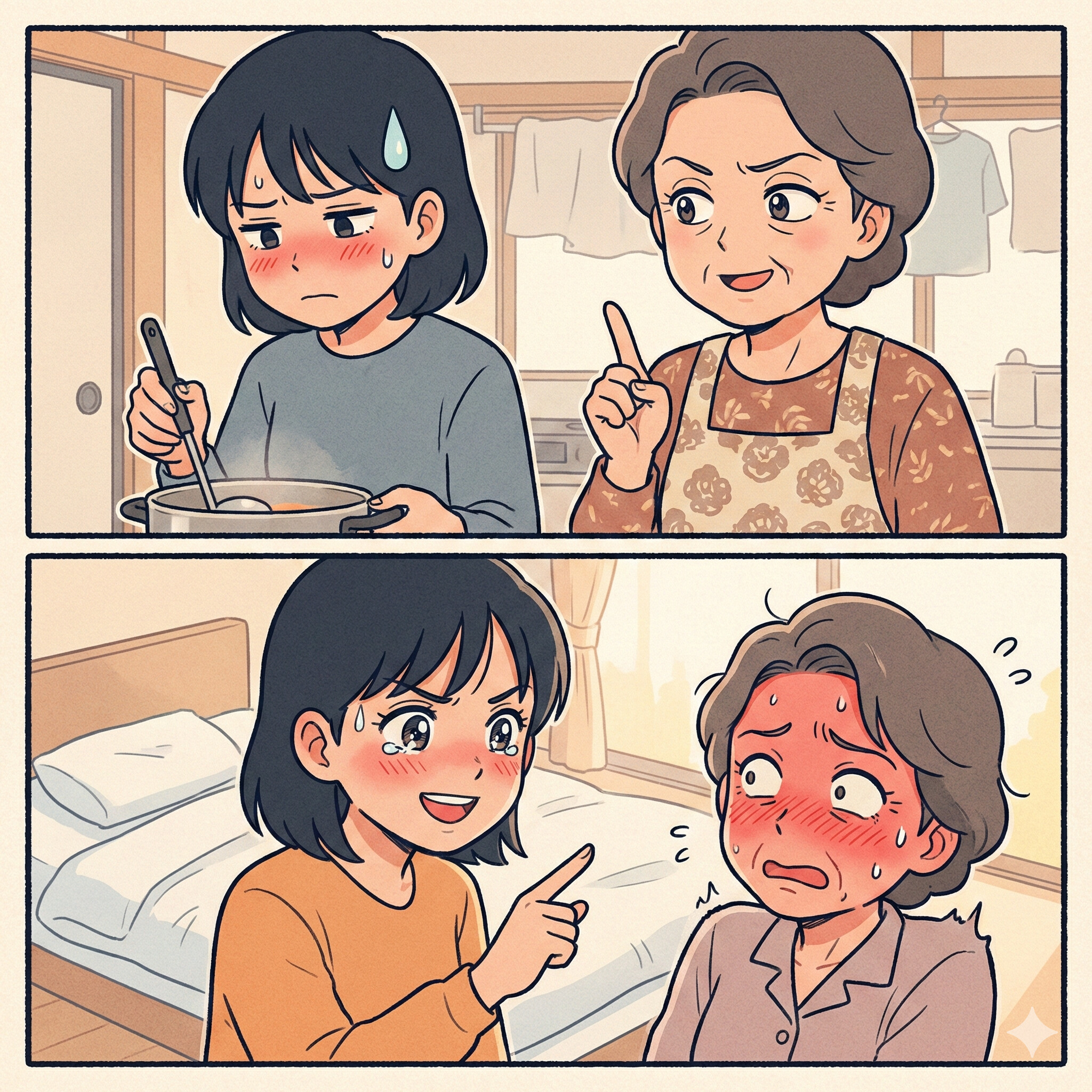 予想外の反撃に、言葉を詰まらせ真っ赤になる義母。