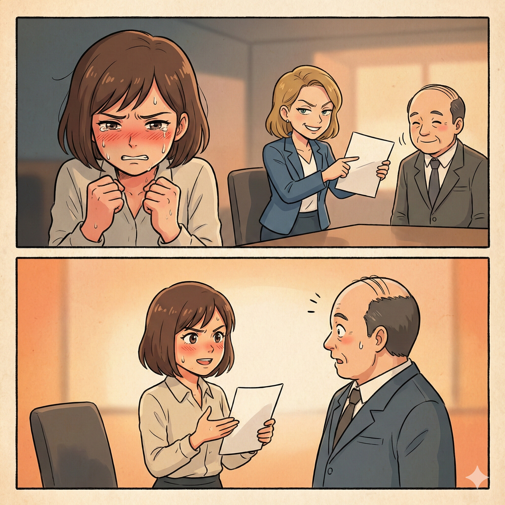 「私がここまでやりました!」ドヤ顔で仕事の手柄を横取りする同僚。だが、同僚が急遽会議を欠席した日、私の逆転劇が始まった