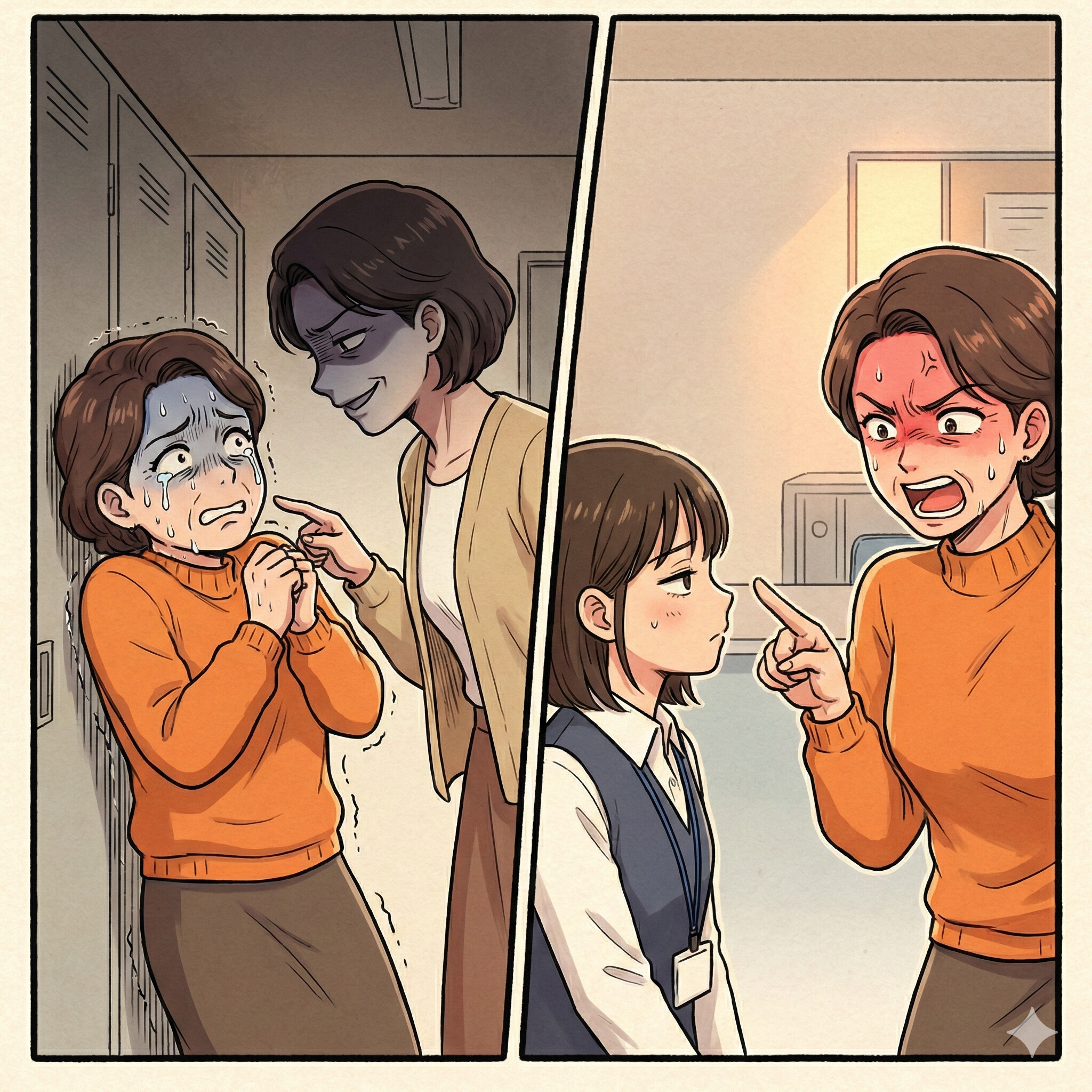 「あんたさぁ、いい加減にしなさいよ。私がミスした書類、気づかないでそのまま出したでしょ?次やったら、シフト減らすように上に言うからね」