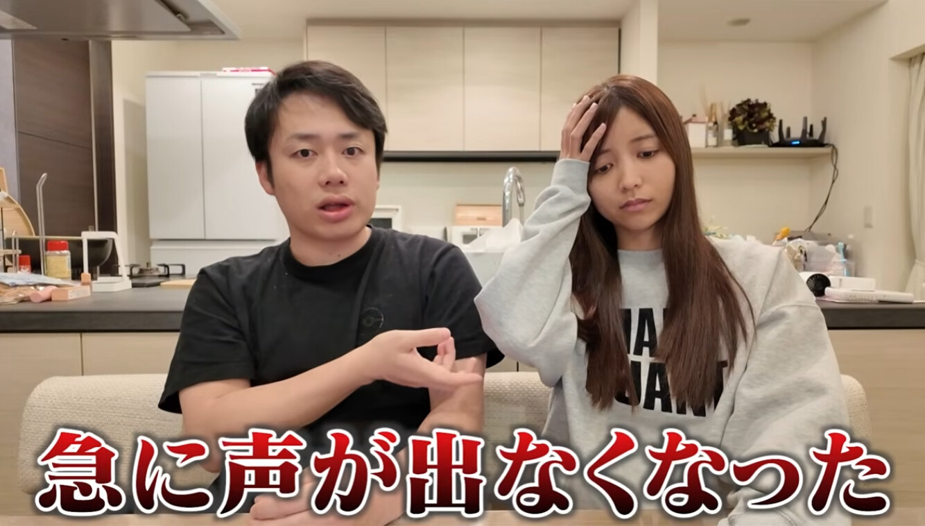動画では、ゆんが子供の風邪から声帯炎を患い、声が出なくなったことを報告。