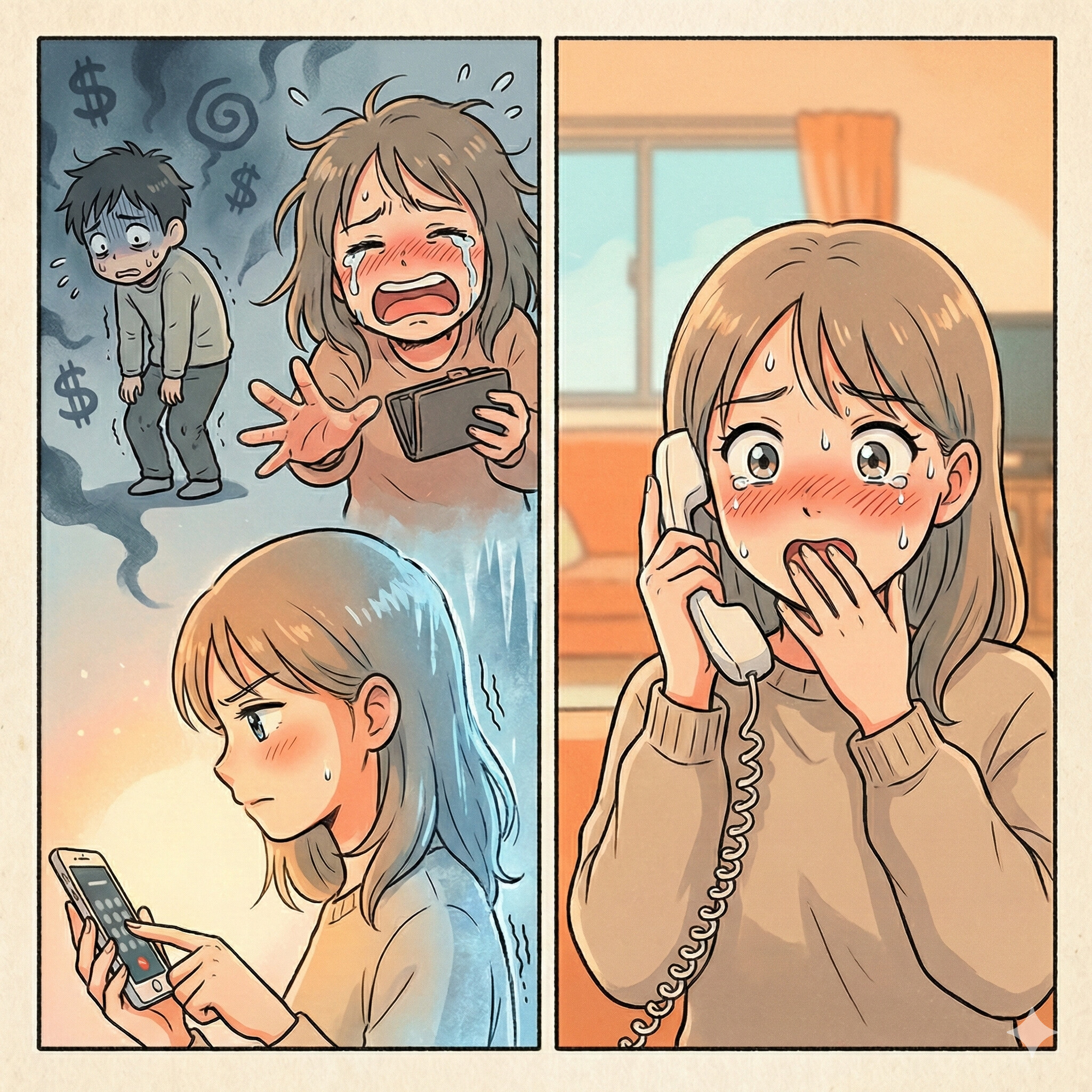 「もしもし、突然すみません。彼にお金を盗まれたんです!」