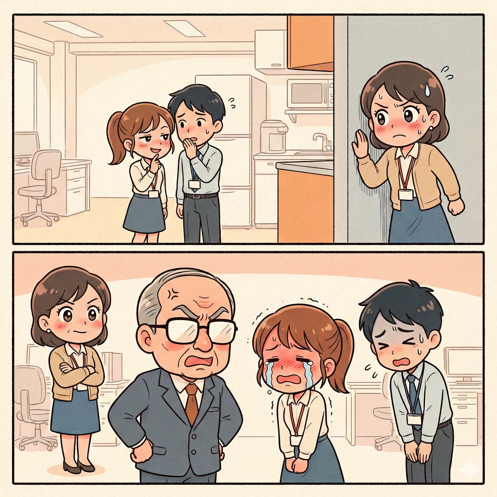 ある日、給湯室で後輩が同期と話しているのを偶然聞いてしまったのです。