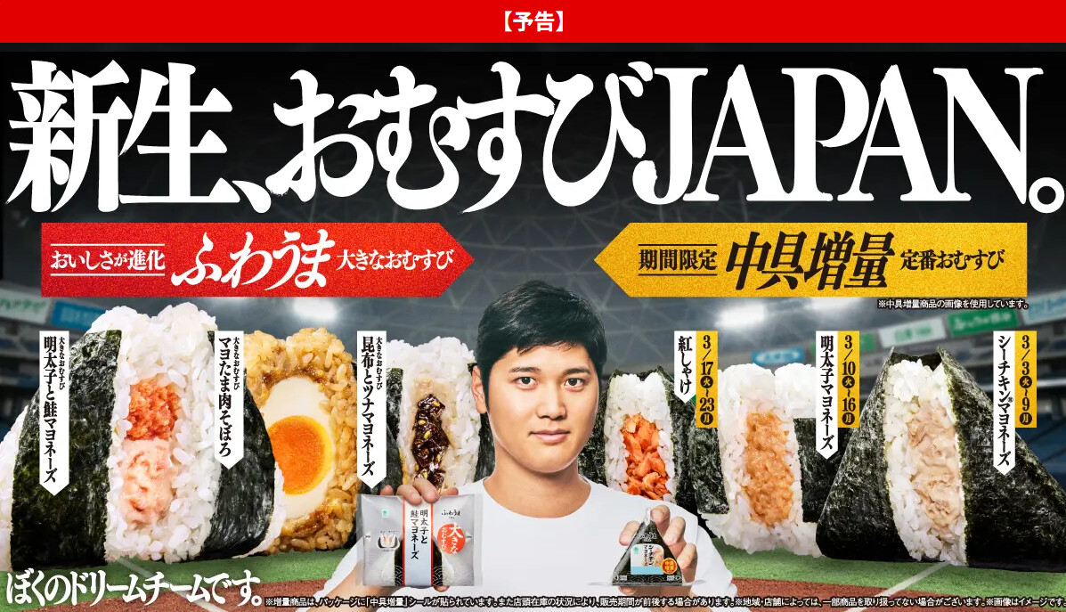 ファミリーマートが創立45周年を記念して打ち出したのは、日々の生活に直結するおむすびでした。「新生、おむすびJAPAN。」と名付けられたキャンペーンでは、独自の「ふわうま製法」を採用した新商品や中具増量おむすびが登場。さらに3月3日からの第1弾として、「おむすび全品」が2個購入ごとに45円引きになるセールが実施されると発表されました。