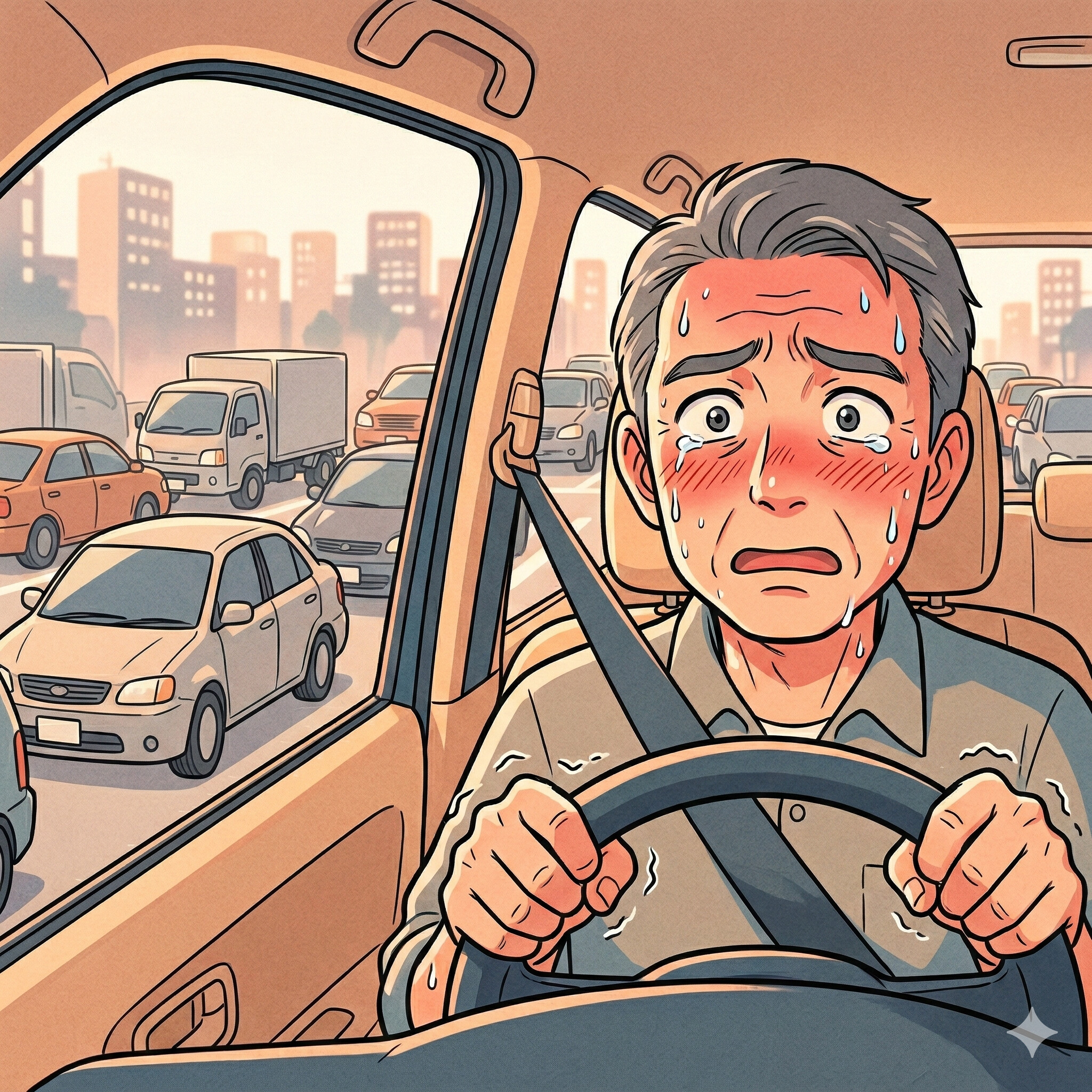 心臓が早鐘のように打ち鳴らされ、ハンドルを握る手が小刻みに震えます。