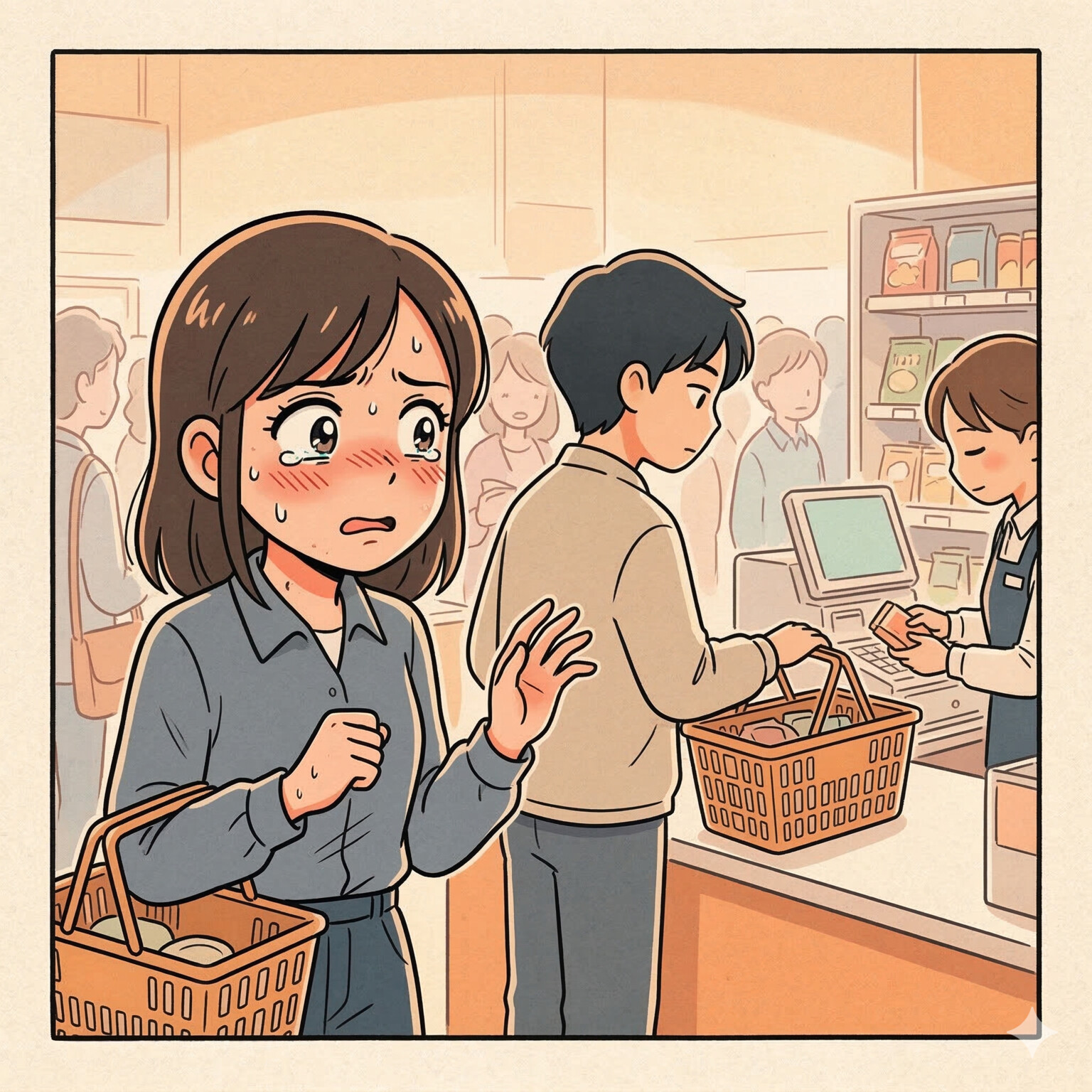 その人は、後ろに私が並んでいたことなど最初から存在しなかったかのように、平然とした顔でレジ台にカゴを置いたのです。