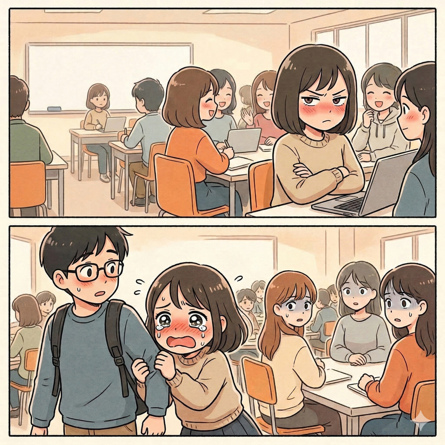 潤んだ瞳で男子を見上げる彼女。あまりの豹変ぶりに、周りの女子たちは絶句。