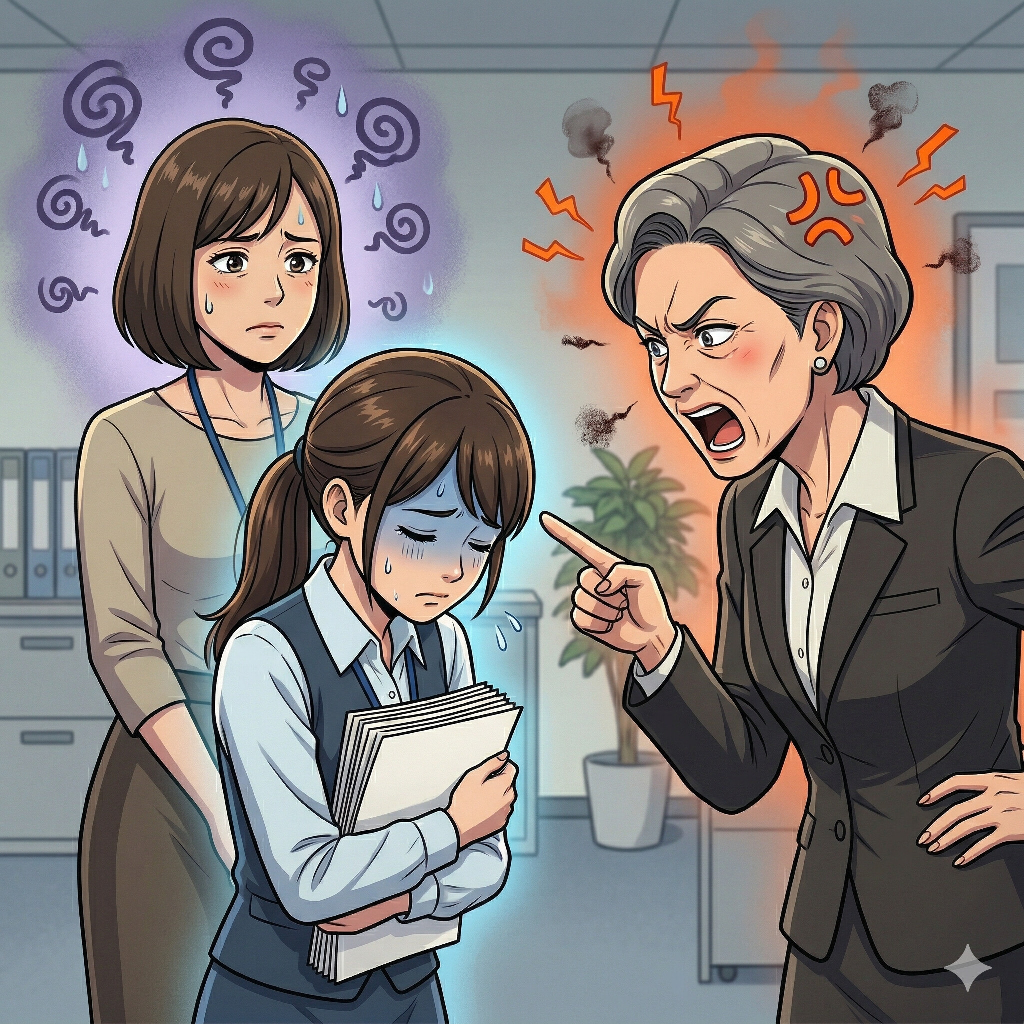 隣のデスクから、今日も古株スタッフのヒステリックな声。相手は同じ立場のスタッフなのに、まるで上司のように容赦なく叱りつけます。