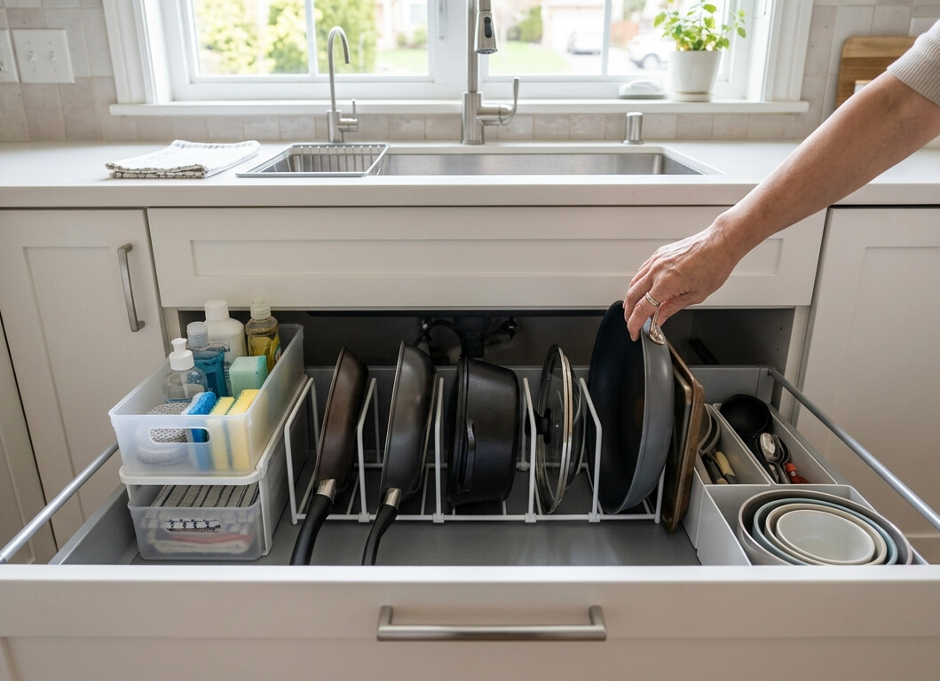 単なる整理整頓の枠を超え、身体への負担を最小限に抑える「健康維持」のための収納術が、大人世代を中心に新生活のトレンドとなっています。 これまでのシンク下収納といえば、鍋やフライパンを「重ねて置く」のが一般的でした。しかし、この方法では下にあるものを取り出す際、深い前屈みやしゃがむ動作を強いられます。