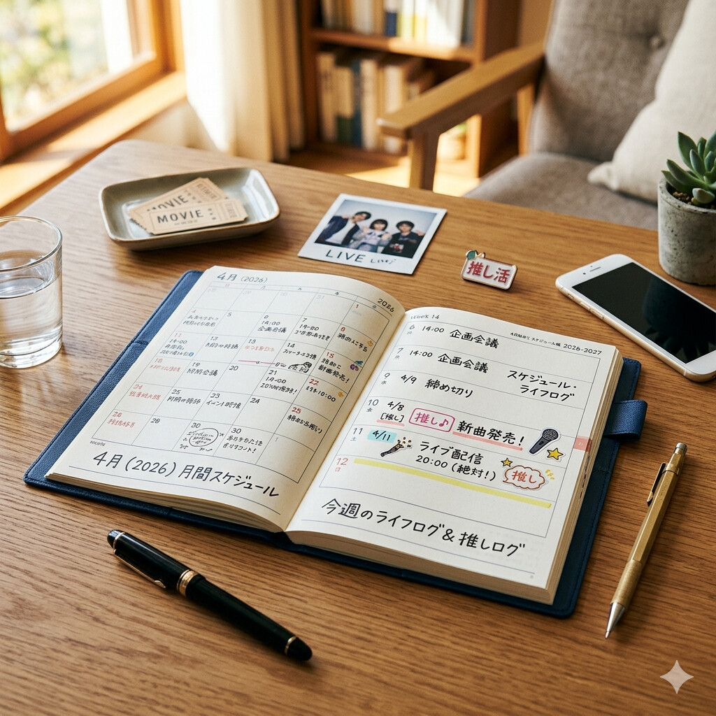 SNSでは、単なる予定管理を超えた「ライフログ(生活記録)」としての活用報告が相次いでいます。特に、日々の出来事に「推し活(応援している対象の記録)」を組み合わせるスタイルが、全世代的なトレンドとして定着しつつあります。