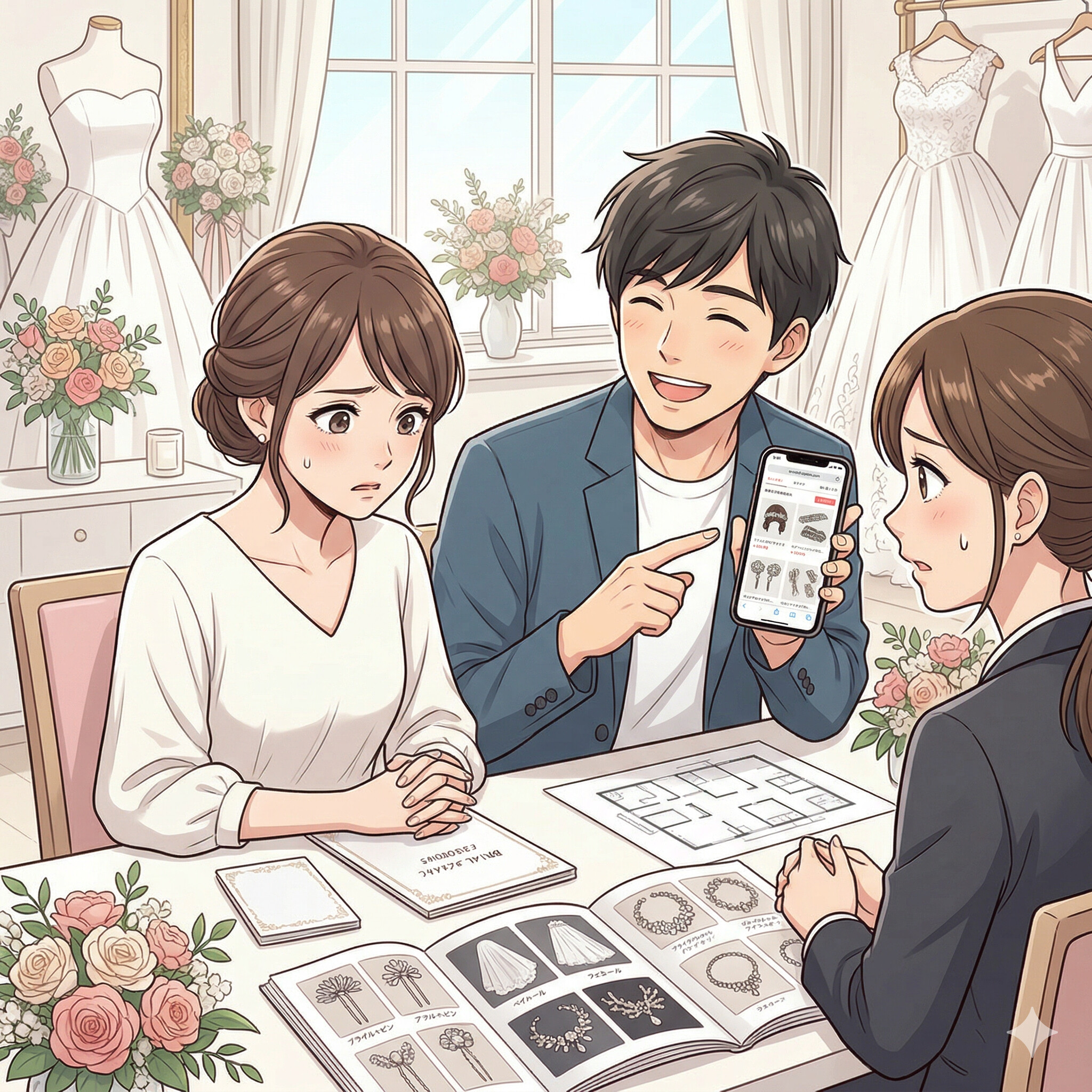 「あ、髪飾り?海外の激安通販サイトでいいよね」結婚式の打ち合わせで予算重視の夫に絶句!花嫁のテンションが下がった瞬間