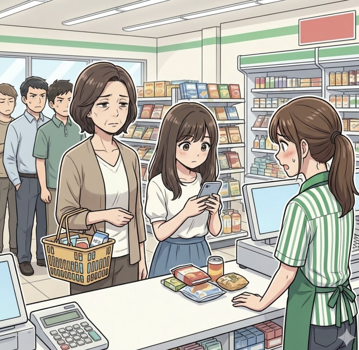 「あの、進んでますよ」コンビニのレジで遭遇したスマホに夢中な客。会計時に見せた行動に思わず絶句