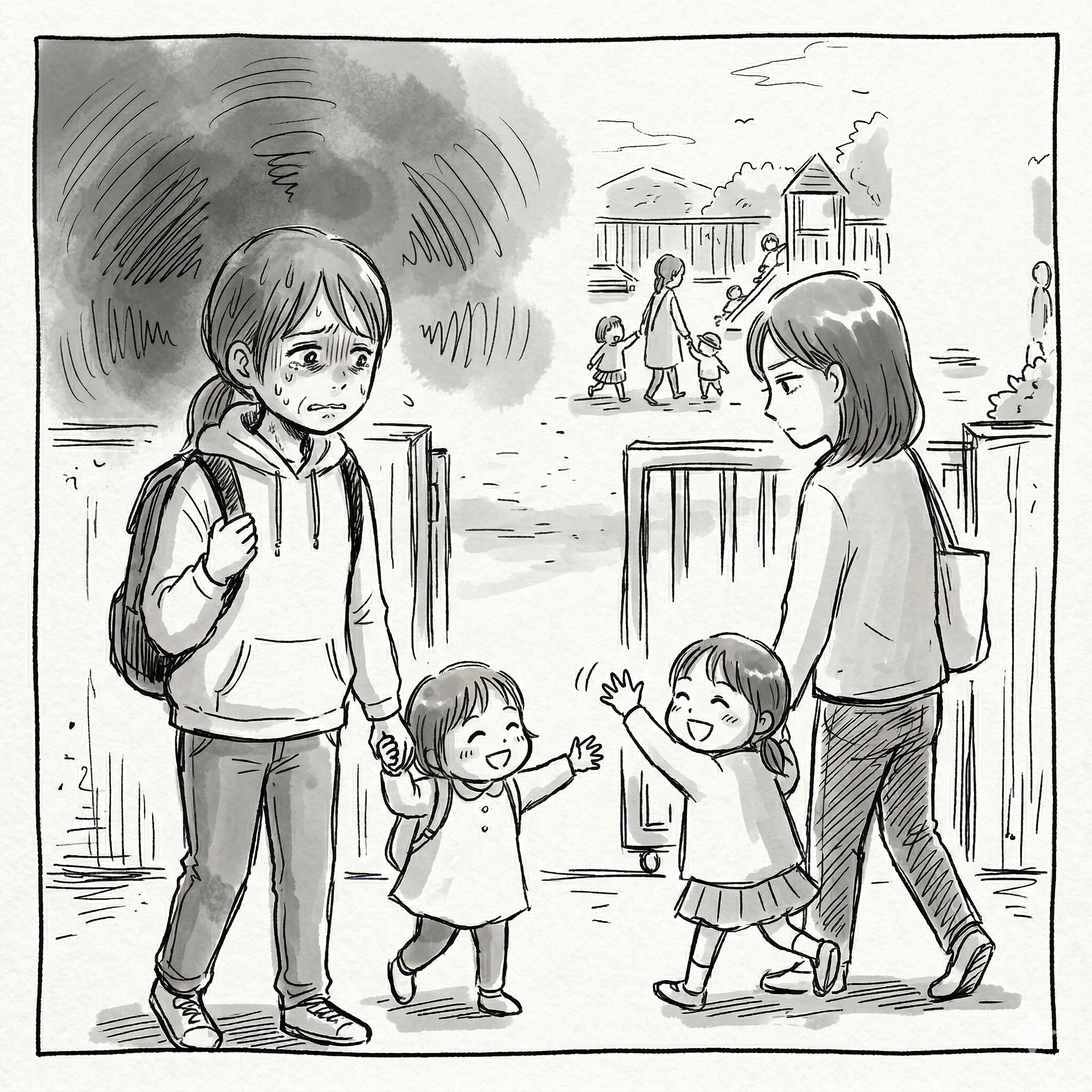 毎朝顔を合わせるママ友が、今日もすぐそこにいらっしゃいます。