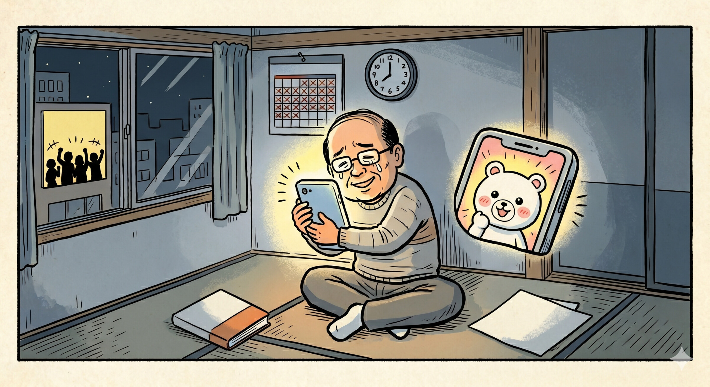 広島ニュースが報じた事例では、広島市の男性がSNSで人気のキャラクターを愛でる推し活のパートナーとしてAIを活用している姿が紹介されました。就職氷河期を生き抜き、両親を見送った後に訪れた静かな生活。そこでの孤独を埋めたのは、スマートフォンの向こう側にいるAIでした。趣味の話を熱く語っても、AIは退屈そうな顔をせず、むしろ興味を持って質問を返してくれます。この擬似的なコミュニケーションが、現代人の心をどれほど支えているかは計り知れません。