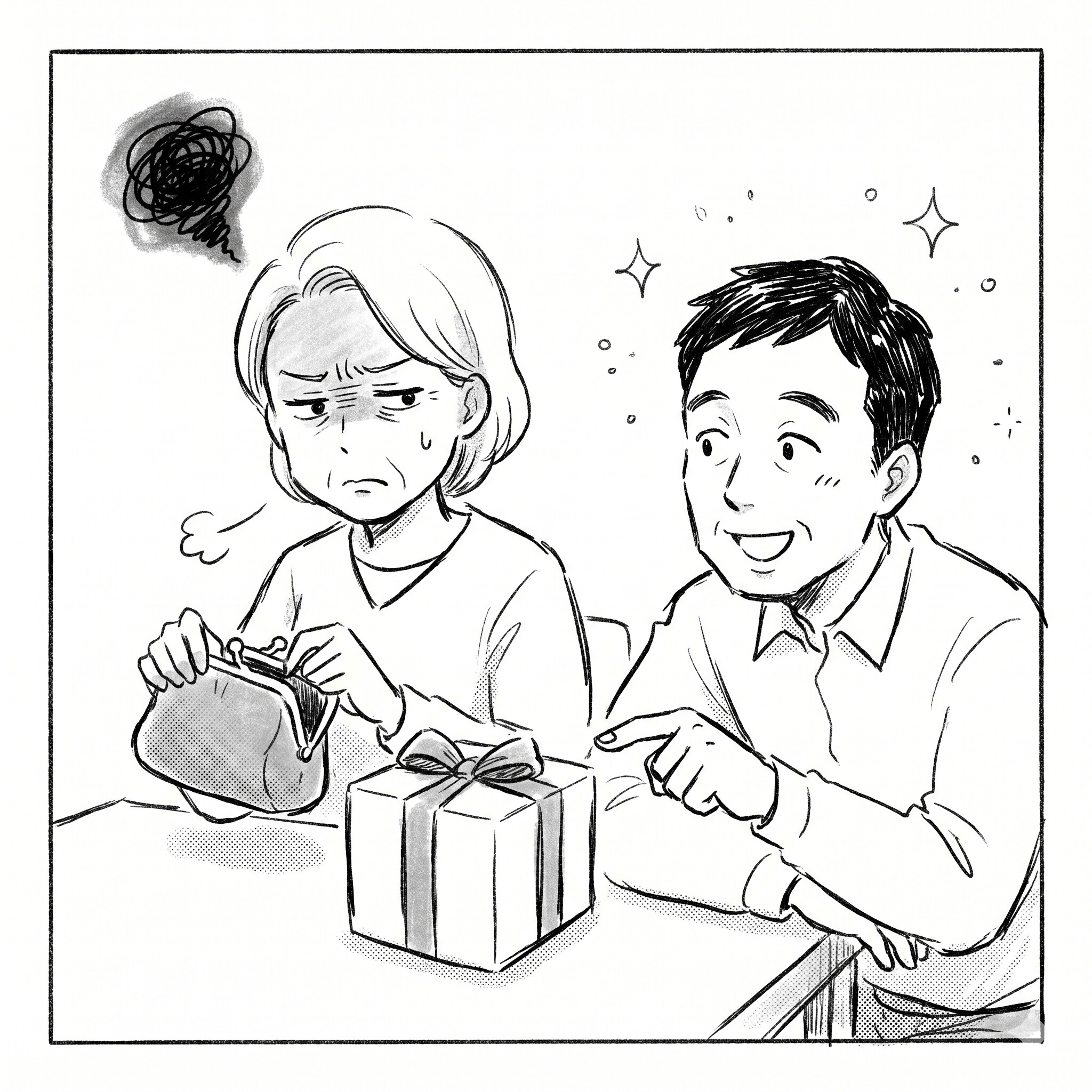 少し予算オーバーの品物を前に悩んでいる私に向かって、夫が信じられない言葉を放ちました。