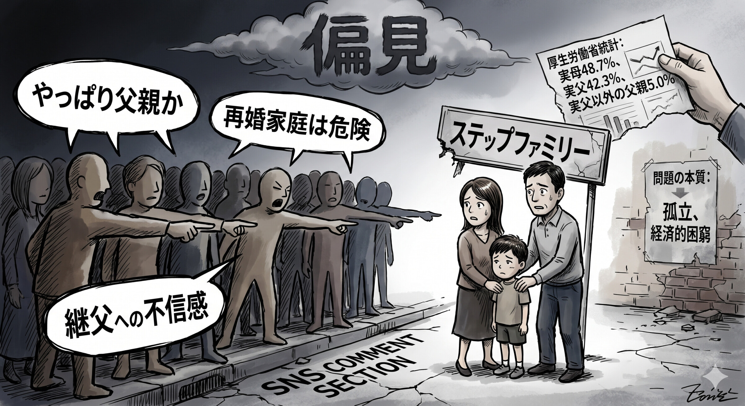 こうした風潮に対し、一部の政治家や有識者からは、属性だけで人を判断する危険性を指摘する声が上がっています。厚生労働省の統計によれば、児童虐待の相談件数において主な虐待者は実母や実父である割合が非常に高く、実父以外の父親によるものは全体の数パーセントに留まっています。分母となる世帯数が正確に把握しづらい現状はあるものの、イメージだけでリスクの高低を断じることには慎重さが求められます。