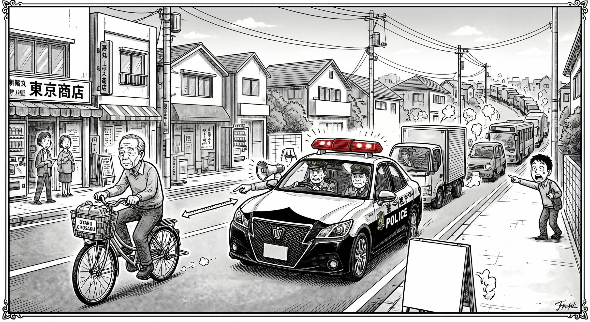 パトカーが自転車を抜けず大渋滞。道交法改正の理想と日本の狭い道路事情が招いた皮肉な現実に批判が殺到