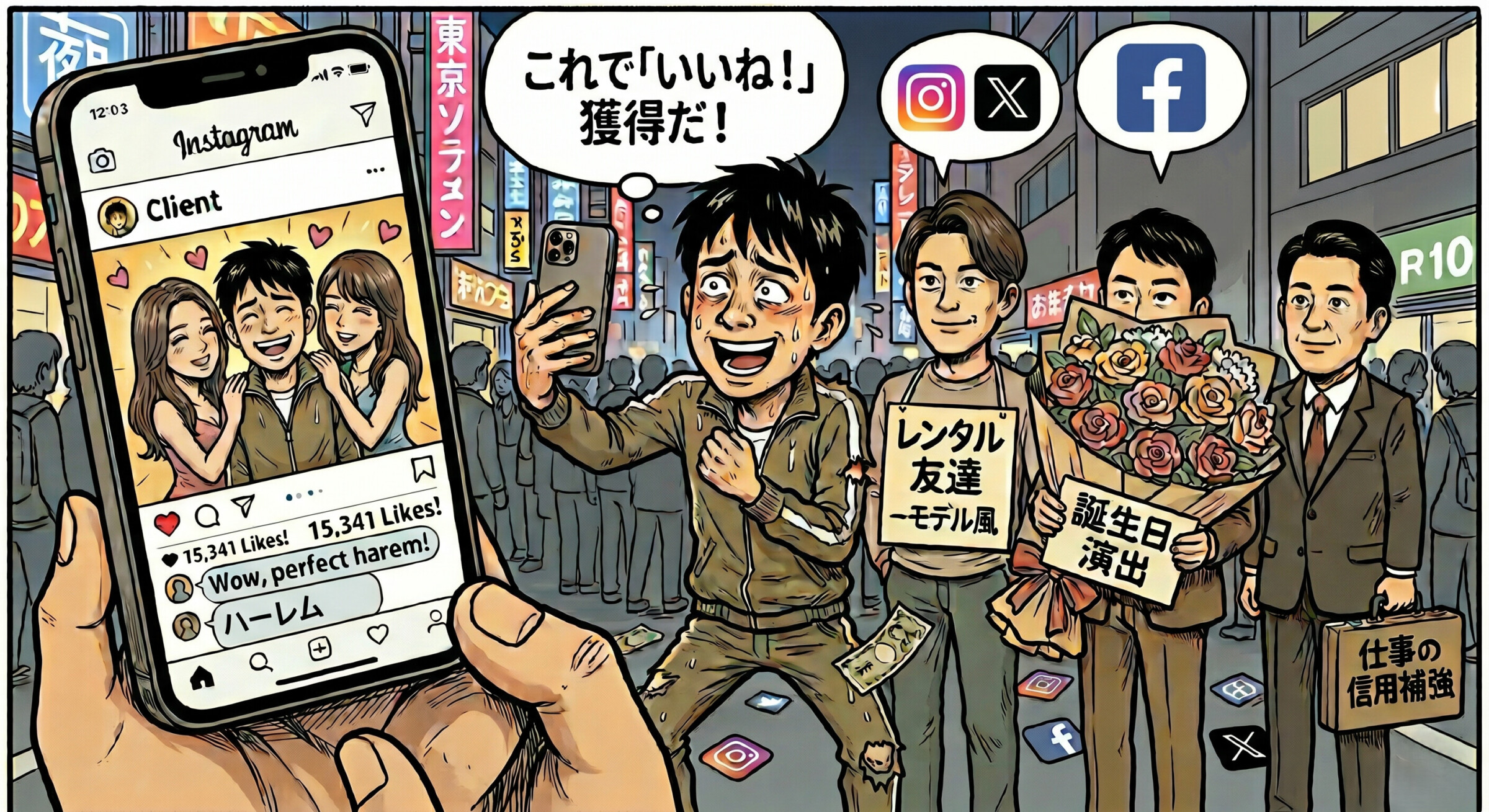 かつては冠婚葬祭の人数合わせが主目的だった友達レンタルサービスが、いまやSNSでの自己演出ツールとして劇的な進化を遂げています。誕生日会でのサプライズ演出や、リゾート地での華やかなグループショットなど、あたかも充実した私生活を送っているかのような風景を買い取る利用者が急増。TikTokやインスタグラムでの評価が個人の価値を左右しかねない現代において、人間関係を外注するという新たな選択肢が波紋を広げています。