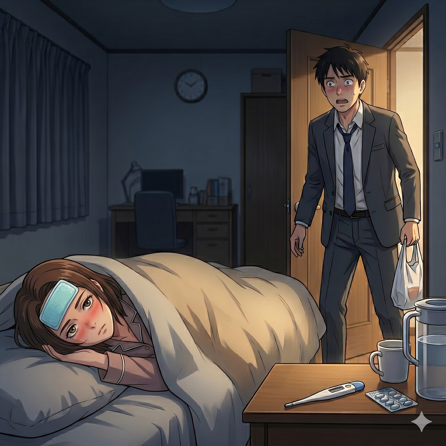 私が苦しそうに荒い息を吐き、額に冷却シートを貼って横たわっている姿を見た夫。普通なら「大丈夫?」「何か買ってこようか?」と心配する場面でしょう。